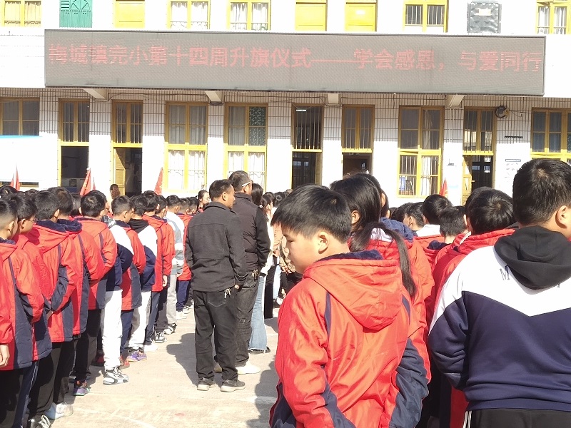 本网讯 11月28日,梅城镇完小举行以“学会感恩,与爱同行”为主题的活动。