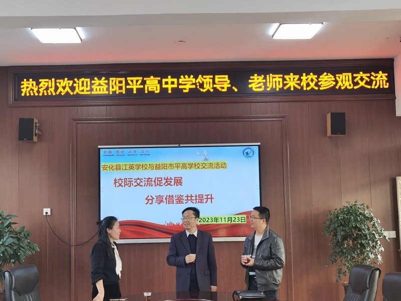 本网讯 11月23日至24日,益阳市平高学校与安化县江英学校携手开展两校校际交流活动。 23日下午,益阳市平高学校党支部书记、初中部校长雷际平、副校长罗虹、校长助理张志飞所带领的15名语文、数学、英语、历史、道法、物理、化学等学科带头人,驱车百余里来到安化县江英学校,在江英学校党支部书记、校长谢豪、督学谌安云、初中部校长戴思妹等领导和老师的陪同下,参观了美丽的校园,了解了学校的办学历程。在教学楼五楼会议室,谢校长致热情洋溢的欢迎词,戴校长介绍了学校校园文化建设、教育特色发展和教育教学管理,以及学校办学理念、文化内涵、育人环境、育人成果等情况。随后,在晚辅学习观摩活动中,两校以“一问一答”的对话交流方式,共同探究和解读新课标中民办教育发展理念。 24日上午,两校进行了七科课堂观摩(分学科自主听课、评课交流),以及阳光大课间观摩活动。在经验分享中,江英学校教务部门介绍了团队建设和管理、课后服务和“365特色课程”的开展情况;德育部门分别介绍了学生常规管理和班主任常规管理,包括学校文化、学校体育、学校安全管理及社团工作情况。 益阳、安化两校携手,相互交流,共同提高。此次两校校际交流内容充实而丰富,不仅增强了市与县、校与校之间的联系,而且还为两校教师之间搭建了互相交流学习的平台,提升了教师的能力。