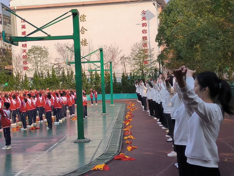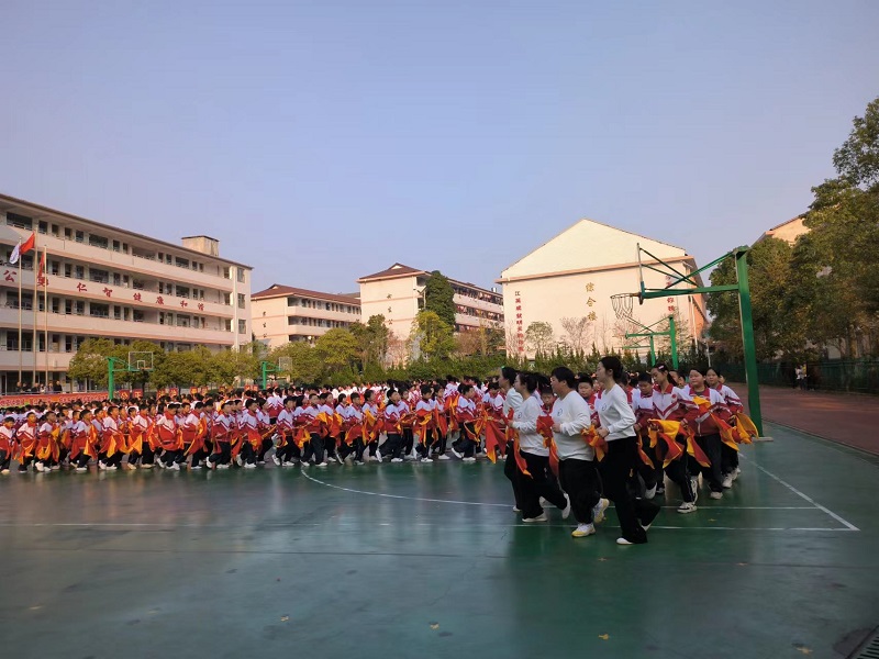 本网讯 “阳光大课间开始了!”11月24日上午,安化县江英学校小学部响起了大课间的铃声,20多个班、1100多名师生伴随着《运动员进行曲》,分别从一、二、三、四楼到各教室,排着整齐的队伍,手持着红色彩带,精神抖擞,活力满满地走向操场。 该校大课间操分为四个篇章:第一篇章是非遗铜铃舞,根据非物质文化遗产的土家族八宝铜铃舞演变而来,配乐《中国范》进行律动,旨在让学生体会非遗的魅力,感受民族特色,传承民族文化;第二篇章为英语律动,师生在英文律动中领略异域风情,培养国际视野,担当社会责任;第三篇章乃千字文《武术操》,学生在拳脚展示之间体会中国武术的博大精深,展示民族精神的力量,坚定强身健体、保家卫国的决心和志向;第四篇章是诵读操《少年中国说》,致敬经典,师生一起向未来。在慷慨激昂的吟诵环节,展示建设者和接班人应有的神韵和风采。在这之后,就是独具特色的龙形跑操,既锻炼了身体,又培养了学生的团队协作意识,增强了学生的纪律意识和集体荣誉感。 据悉,该校坚持“每天运动一小时,快乐生活一整天”的健康理念,在锻炼形式上不断推陈出新。通过“阳光大课间”,学生真正体会到了“我运动、我快乐、我健康”的意义。如今,“阳光大课间”已成为学校的一道亮丽风景线。
