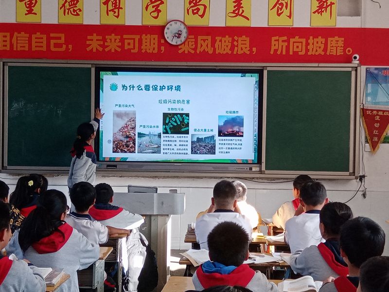 本网讯 11月21日,江南镇中学召开“保护生态环境,建设美丽中国”主题班会。 班会上,班主任利用图片、事例、数据、视频等,通过ppt向学生阐释了保护环境的重要意义,分析了垃圾污染的危害,指出了我们现实中存在的环境问题。着重从废物利用、减少垃圾、做好垃圾分类等几个方面,具体而微地介绍了保护环境的方法和措施,提醒学生保护环境,从自身做起,增强环保意识,养成良好行为习惯,做生态文明的践行者,为“推进生态文明,建设美丽中国”作出贡献。 据悉,该校还开设了“垃圾分类益处多,环境保护靠你我”知识宣传专栏,进行了“美化校园,保护环境”为主题的黑板报评比活动,成立了志愿者队伍,开展绿色环保活动。