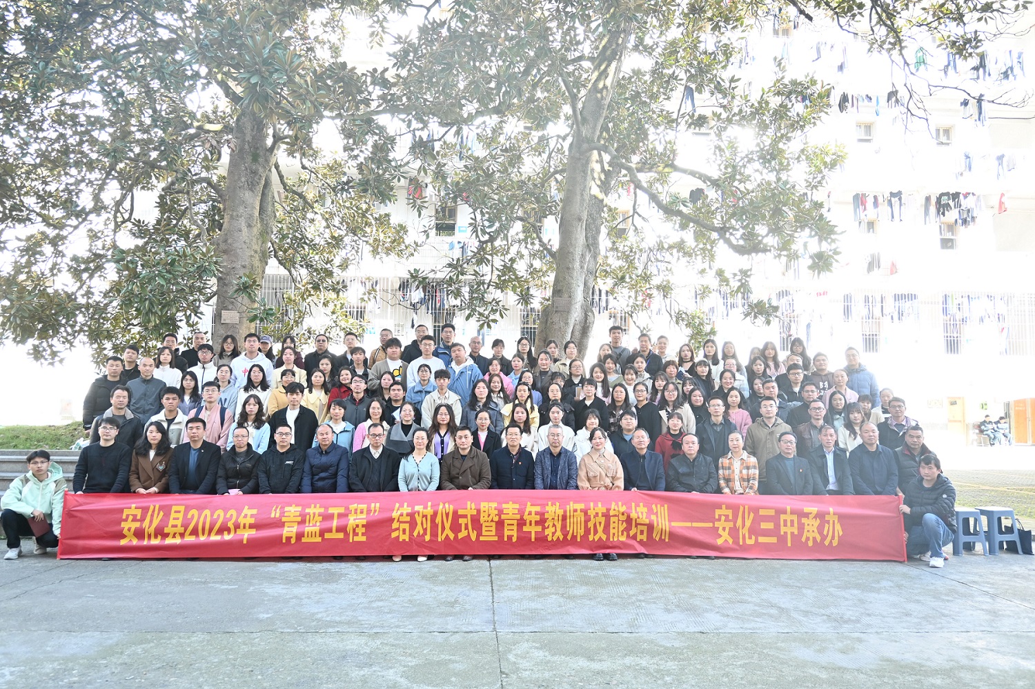 本网讯 11月19日下午三点半,安化县2023年“青蓝工程”结对仪式暨青年教师技能培训在安化三中教师会议室举行,安化一中校长聂可相、安化县教师发展中心主任李拥军和全体高中教研员及100多位高中教师参加活动。 结对仪式上,在众领导与老师的见证下,各科师向师傅敬茶、献花,来自安化一中的8位骨干教师与安化三中的8位青年教师结成师徒,共赴教育之途。 11月20号上午,进行了师傅与徒弟的同课异构展示,20多堂课,各具特色、各有千秋,充分展现出了教师们良好的学科素养、充分体现出了教师们扎实认真的教学态度。下午,各学科教研组长组织并开展了教学研讨活动,通过师徒互评、听课教师点评、发展中心教研员总评,进一步强化了青年教师对新课标的理解与认同,为各学科的教学指明了方向。 活动结束后,参与本次活动的全体人员在玉兰树下合影留念。