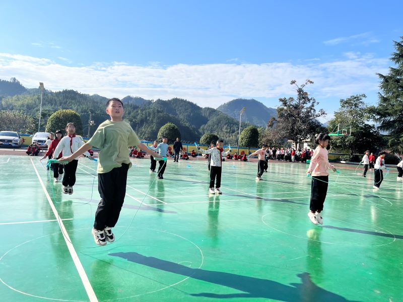 本网讯 11月7日上午,烟溪镇首届中小学生体育艺术节全员跳绳比赛新开完小赛场正如火如荼的举行。 全校12个班,470多人参加比赛,分班级依次进行。一声哨响,一根根彩绳在不停地飞舞,一张张纯真的笑脸在灿烂的阳光下闪烁着光芒,孩子们个个“绳”彩飞扬,各显其能,奋勇拼搏。在紧张激烈的比赛氛围中,同学们秩序井然,表现出了顽强的拼搏意志、高尚的竞赛品质和极强的集体荣誉感。 赛前,各班积极备战,同学们每天努力练习,不断地突破自己。据悉,“一日一跳绳”是该校特色“六个一”活动的内容之一,以锻造未来社会发展的适应者为目标,遵循大自然发展之规律,培养德、智、体、美、劳全面发展的社会主义建设者和接班人。 校长伍琼军表示,本次比赛的开展调动了学生体育锻炼的积极性,提高了孩子们的集体意识与团队荣誉感,丰富了学生的课外活动,彰显了学校志、美、勤、毅四字校训的内涵,为学生体质健康发展奠定了坚实基础,展现了学校拼搏进取、团结友爱、积极向上的精神风貌。