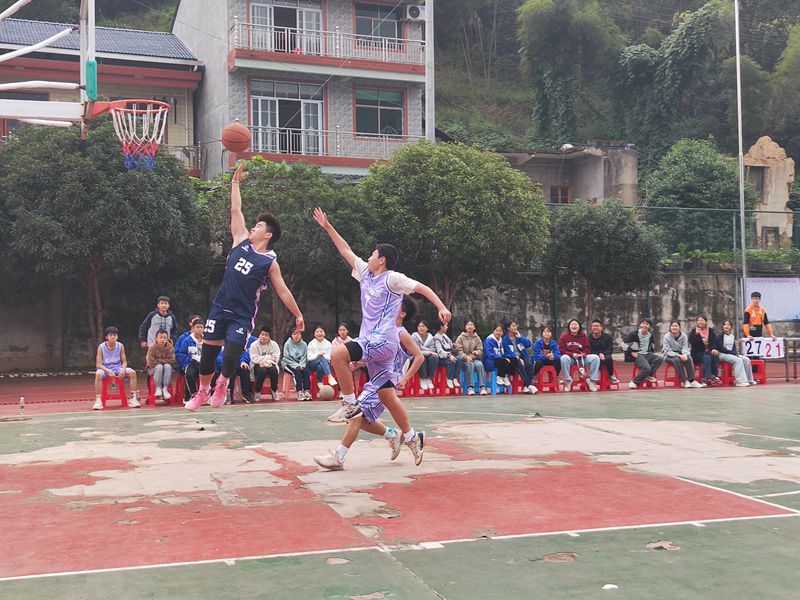 本网讯 11月1日,木孔中学学生篮球队与来访的大福镇中学篮球队举行了一场校际交流友谊赛。 主持人强调,在赛场上要发扬友谊第一、比赛第二的风格,要求两边的队员相互握手问候,随着裁判哨响,比赛开始。开球后,场上的队员似猛虎下山,跑位、传球、抢板、投篮等个个身姿矫健,既做到了规范有尺度又不失应有的身体对抗。双方队员你来我往,各显神通,比分交替上升,场面十分精彩激烈。场下的啦啦队也没有闲着,大声地为场上队员加油呐喊、欢呼跳跃,更是让比赛的氛围一浪推一浪,不断涌向高潮。 经过上下半场的激烈角逐,最终比分定格在42比40,木孔中学队以两分优势险胜。