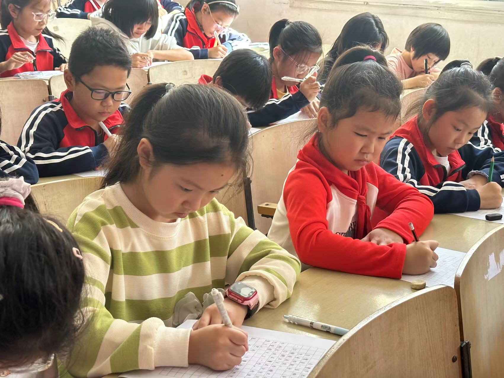 比赛现场,同学们精神饱满,坐姿端正,神情专注,俨然一副“小小书法家”的模样。横竖撇捺、起笔收笔,无不彰显着汉字形神兼备的灵韵。随后,由李志新校长带队组成的评委团,从字体的美观度、结构笔画的规范度、用笔的力度及卷面的整体效果等方面对书法作品进行综合评价。