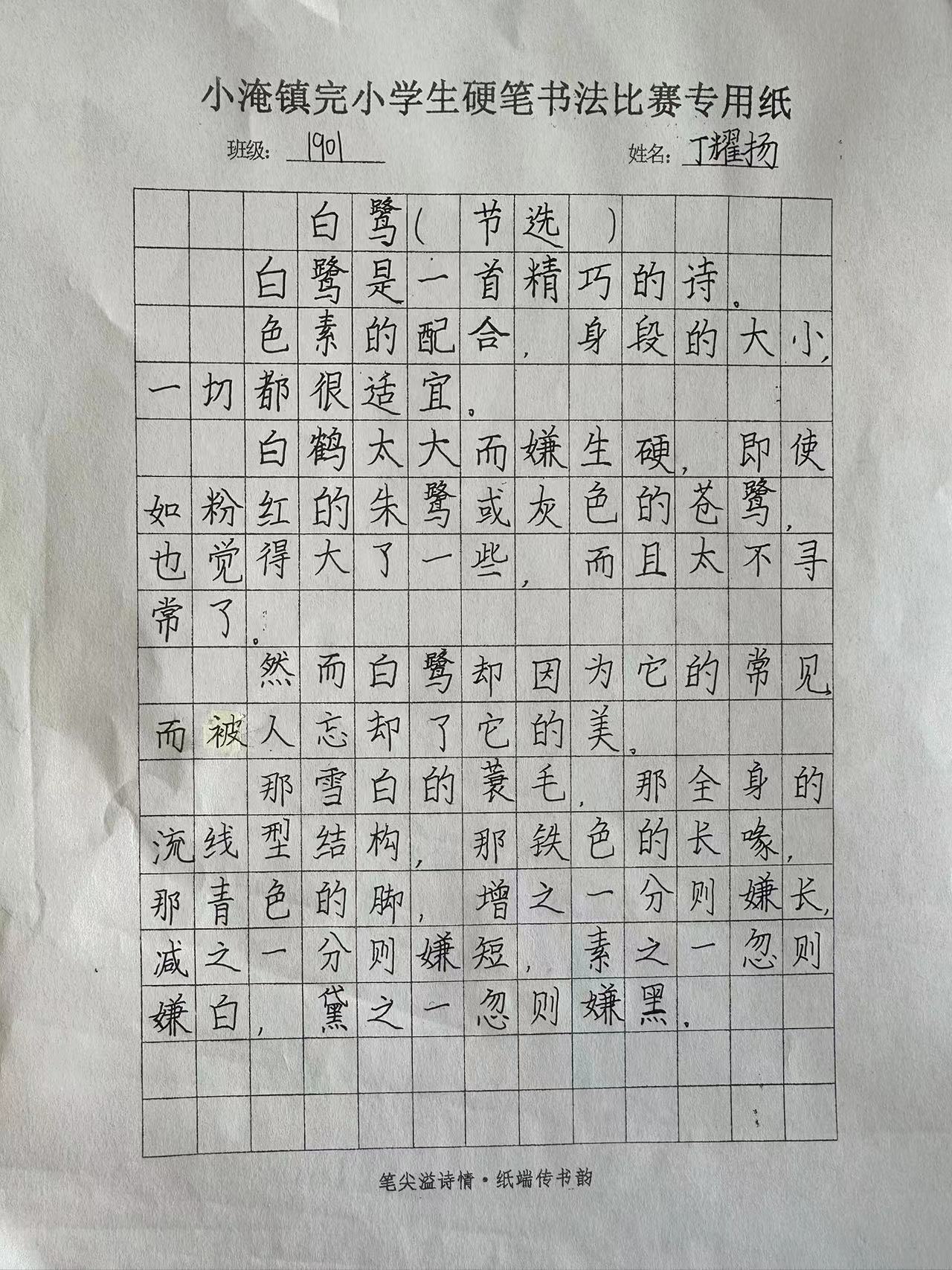 本通讯 10月31日,小淹镇完小举办“笔尖溢诗情·纸端传书韵”硬笔书法比赛。
