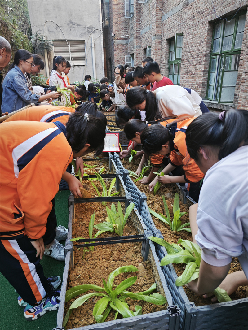 本网讯 10月30日下午,黄沙坪完小举行“一起‘趣’种菜呀”开心农场开园仪式,全校师生共同参与,快乐的农耕之旅正式开启。 开园仪式上,学生代表王苗向同学们发出用心呵护,精心培育小苗的倡议。校长刘颖为各班推荐的擅长种菜的家长颁发了聘书,他们对如何更好地照顾菜苗进行了详细指导。最后,刘颖作总结性发言并宣布正式开园。 种植活动开始了,同学们在老师、家长的带领下,提着水桶、拿着铁锹、捧着菜籽,迫不及待地来到自己班级的菜地,开始播种。 家长们手把手教学生如何挖地,如何播种。老师们也撸起袖子、拿起锄头,和同学们一起播下第一粒种子,在一片欢声笑语中,大家热火朝天地挥洒汗水,播种希望。 小小的一方菜畦,让同学们感受到了劳动的无尽乐趣。在这里,课堂上所学的知识得到充分实践;在这里,同学们播种了第一粒种子;在这里,同学们将一起见证收获与希望!