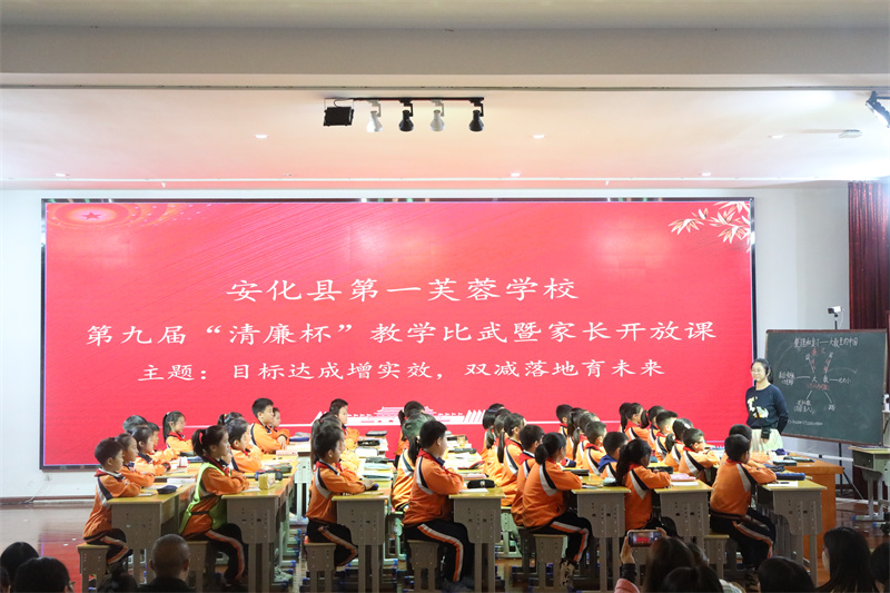 本网讯 10月26日至10月27日,安化县第一芙蓉学校第九届“清廉杯”教学比武暨家长开放课活动在该校四楼“芙蓉讲坛”举行。活动邀请了东坪完小、中砥完小、黄沙坪完小三所学校教师代表和各班家长参加,活动全程线上直播。 活动前,该校教科室主任谌伟平对各校领导、老师及各班家长们的到来表示了热烈的欢迎,并对学校教育教学坚持推进“目标达成课堂教学”改革及“双减”政策的落实进行了简要阐述。 活动中,11位老师精彩的课堂表现,流畅的教学过程,丰富的教学手段,巧妙的巩固练习,赢得了在场所有观众的阵阵掌声。家长们也跟着教师融入了课堂之中,全神贯注地聆听着11位教师的精彩讲授。每堂课程结束,都有专业评委对当堂课程的授课教师进行细致的点评,让会场充满着浓厚的学习氛围。 此次活动是推进“双减”政策落地的有力措施,是促进学校教师业务能力提升的难得机会,不仅让家长走进校园、走进孩子、走进教育,更是一次家校情感的交流对话,促进了家校携手,合作共育。