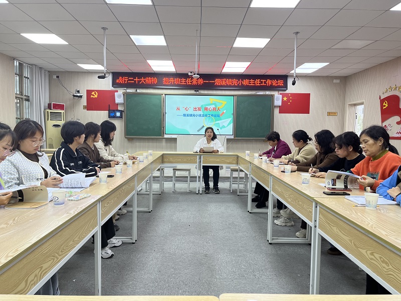 本网讯 10月26日下午,烟溪镇完小的17位班主任在政教处的组织下,在云录播室开展2023年下学期班主任工作论坛。活动由政教处主任陈健主持,学校全体行政人员一起参加活动。 办公室主任刘益行作心理健康教育培训《学会情绪管理》,让班主任学会关爱自己、关注自己的情绪、管理自己的情绪,从积极的角度去看待问题,用积极正面的情绪快乐工作,做爱孩子、懂孩子、会沟通的教师,做一个健康快乐的教育者。 一至六年级的班主任分享自己的育人经验与教育智慧。为了使本次交流会顺利的召开,6位班主任做了前期充分的准备工作,精心地准备了发言稿。老师们将自己在班级管理与班级建设中遇到的问题提出并进行讨论。 陈健作班主任业务培训,她表示班主任在日常工作中要时刻对学生的心理健康状态进行动态观察,做好学生心理健康筛查工作,要定期开展班会与学生沟通交流,了解学生的想法,对于需要重点关注的学生要进行谈心谈话;全体老师要统一认识,齐抓共管,促进学生德智体美劳全面发展;老师们关注学生心理健康的同时也要常抓安全教育,引领学生阳光向上、乐观积极。 副校长彭向阳对本次培训会作总结发言,她肯定了各位班主任的辛苦付出,并对大家的成长寄予厚望。她希望班主任教师能以本次培训为契机,在学习中思考、在思考中感悟、在感悟中提升,一如既往、扎扎实实地做好工作,成为有魅力、有爱心、有温度、智慧型班主任。 本次班主任论坛是心与心的交流,是一次育人理念提升、共谋学校发展的精神盛会。烟溪镇完小全体班主任将凝聚智慧,奋楫扬帆,关爱每一位学生,助力学校的德育工作再上一个新的高度。