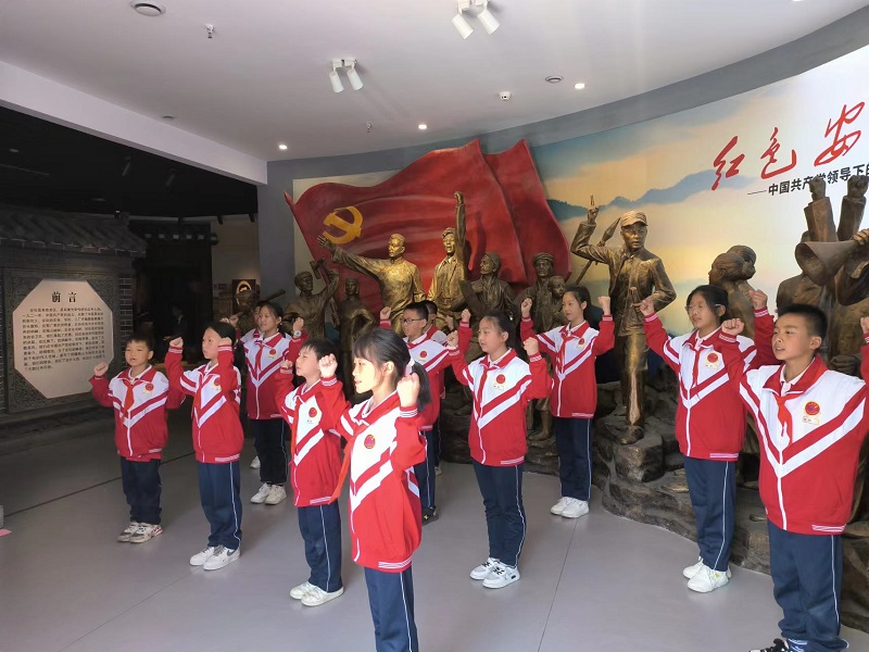 本网讯 10月24日,安化县江英学校小学部50多名少年队队员在学校党支部副书记刘艳、学生处主任刘丽华和少先队大队辅导员梁婷等老师的带领下,走进了安化县党史陈列馆,开展主题为“传承红色基因,争做强国少年”的少先队社会实践活动。 党史陈列馆内,讲解员的深情讲述牵动着师生的心。孩子们紧随讲解员,边走边看,边听边想,被那一个个力挽狂澜、惊心动魄的英雄故事所吸引。党史陈列馆内,从序厅到展厅,再到神韵安化,记载了安化的巨变沧桑,见证着党的光辉历史和英雄史书!“共产党人真伟大,安化共产党人不简单!”小小年纪的他们由衷感叹。少先队员们纷纷立志:做革命的火种,传承红色基因,争做强国少年。讲好红色安化故事,在建设畅通、宜游、秀美、富裕新安化的实践中注入红色力量,在实现中华民族伟大复兴中国梦的征程中展现安化风采。 少先队员们在党史馆内开展了党史知识竞赛、“争做强国少年”演讲和“争当党史宣讲员”等活动。面对着革命烈士的浮雕,师生们激情吟诵着《少年中国说》,抒发着内心的报国之志,爱国之情。 活动中,师生还来到了县河小青行动中心、东坪镇资江社区新时代文明实践站,了解了“保护母亲河,争当河小青”和“垃圾分类”等知识,并在县城人员聚集较多的大码头休闲广场拾捡垃圾、分发垃圾分类的宣传册,并积极向行人宣讲垃圾分类、保护母亲河的重要性,倡导人人成为环保小卫士,守护美丽安化。师生的公益之举,受到了社会各界的高度赞誉。