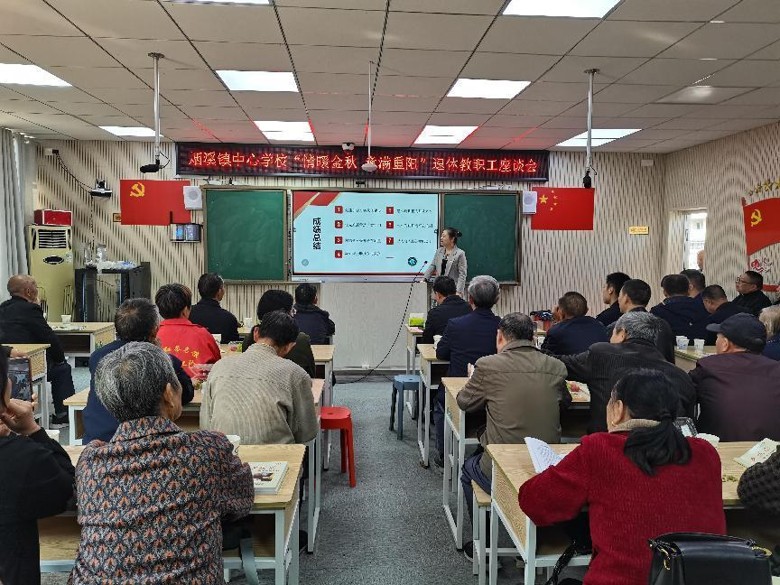 本网讯 10月23日,烟溪镇中心学校在烟溪镇完小召开“情暖金秋 意满重阳”退休教职工座谈会。烟溪镇党委委员、副书记伍朝友,烟溪镇中心学校班子成员及各校校长,退休老教师等共80余人参加。 会上,退休教师刘国建、张唐台分别作了“战胜病魔,健康生活”,“丰富多彩的退休生活”的发言,激励大家要勇敢面对困难,战胜困难,学会快乐生活的健康心态。中心学校退协支部书记王成固作了一年来的退协工作小结,精炼而简短的小结凝练了一位老同志对教育的默默奉献与耕耘,也体现了他为退休老教师的服务精神。中心学校副校长丑智萍从教师队伍建设、教育教学质量、改善办学条件、未来工作展望四个方面,向与会人员汇报了中心学校过去一年来的工作情况和取得的成绩,提出了未来烟溪教育的发展思路,并代表中心学校向老教师致以节日问候和衷心的祝福。她表示过去的烟溪教育凝聚了老教师的心血,现在的烟溪教育年轻一辈将接续奋斗,创烟溪教育新发展,新高度。 伍朝友最后做了总结性发言,他强调全社会要继续发扬敬老、爱老的传统美德,要多关心、关爱老教师的生活。老教师要注意科学保健,快乐生活;积极发挥余热,献计献策。希望各位老教师继续关心、支持与参与烟溪教育,与各位校长共同携手全力推动烟溪教育迈上新台阶!