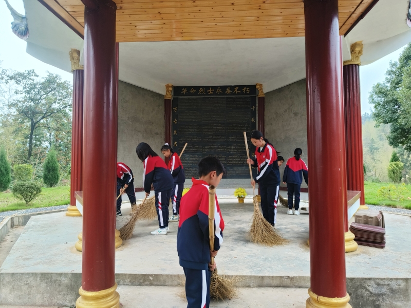 本网讯 10月19日,文昌阁学校辅导员邬思带领优秀少先队员代表来到德育实践基地太阳山烈士亭,开展了一次别开生面的红色寻访活动。 少先队员们首先打扫了烈士亭的卫生,以实际行动践行志愿服务精神。随后,大家在烈士亭前庄严宣誓,重温入队誓词,表达了时刻准备着为共产主义事业而奋斗的决心。接着,大家齐声唱响少先队队歌,以激昂的斗志传承着红色基因。在活动的最后,教师代表林敏为大家讲解了烈士的感人故事。 “此次红领巾寻访活动,不仅让我深入了解了先烈们的英勇事迹,更在实践中感受到了对红色基因的理解与传承。”一名少先队员在参加完活动后说。 ![]()