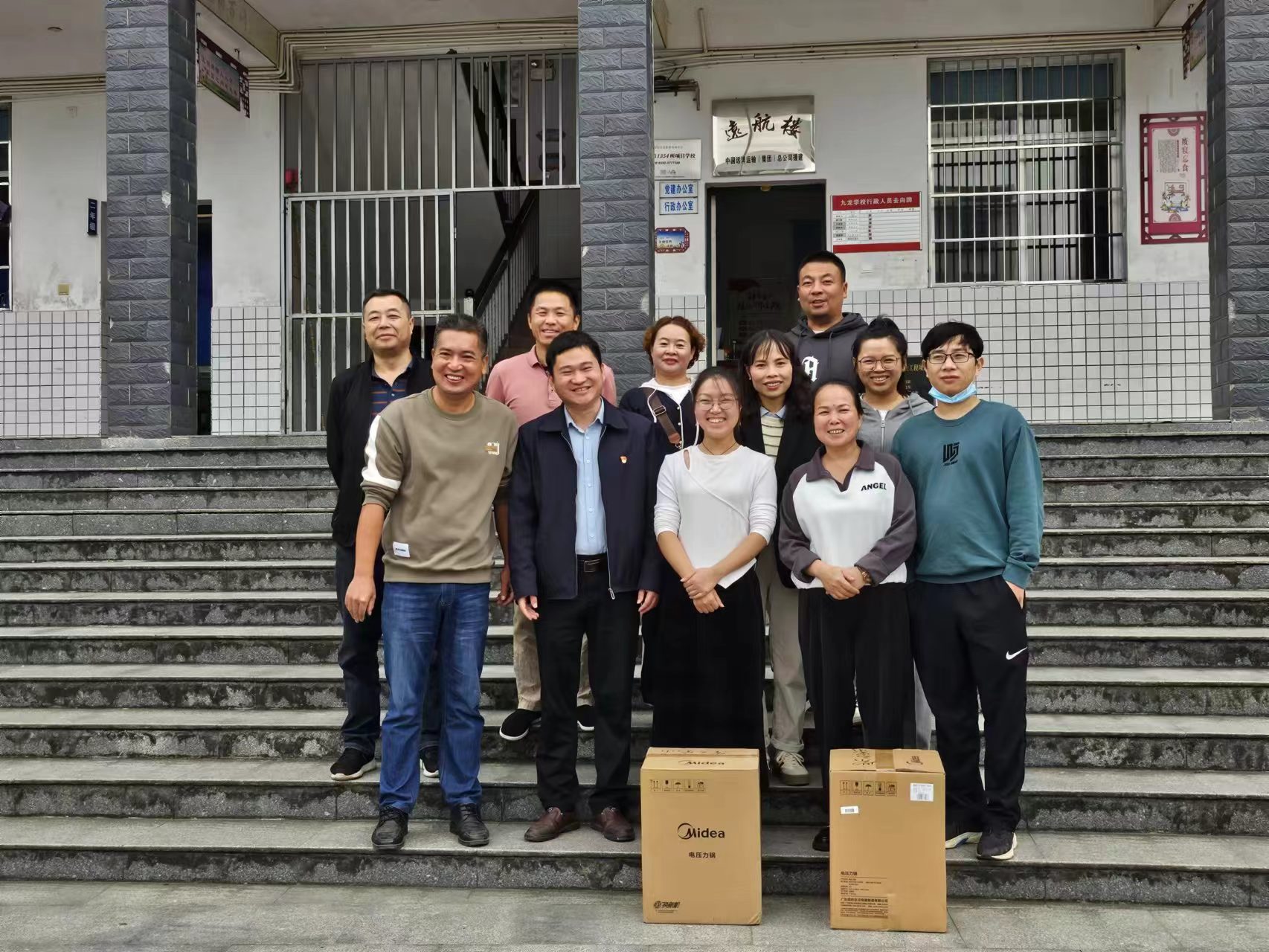 本网讯 10月19日,一支由梅城镇紫云完小校长贺勇及教师代表组成的慰问团,带着全校师生的关心和诚挚的问候,专程前往仙溪镇九龙学校,看望辛勤工作的支教教师周好云及陈姣和。 慰问团抵达九龙学校后,受到了该校校长杨跃飞的热情接待。在杨跃飞的带领下,一行人参观了九龙学校教学楼和劳动教育耕植园,了解了校园文化和教育管理措施。随后,慰问团坐在一起,亲切交谈,将带来的慰问品压力锅转交给两位支教教师,表达了对支教老师的关心和敬意。同时转达了紫云学校工会主席曹双飞的鼓励,希望他们不忘初心、不怕困难、踏实工作,将先进的教育思想、教育教学理念、教学经验展示出来,高效优质完成支教任务。 对于学校领导的慰问,两位支教老师十分感动,他们表示一定不辜负学校和领导的期望,全身心投入到支教工作中去,用自己的实际行动完成支教的神圣使命,并感谢学校对他们的关心和支持,也感谢这个机会让他们有机会为偏远地区的教育事业贡献自己的力量。