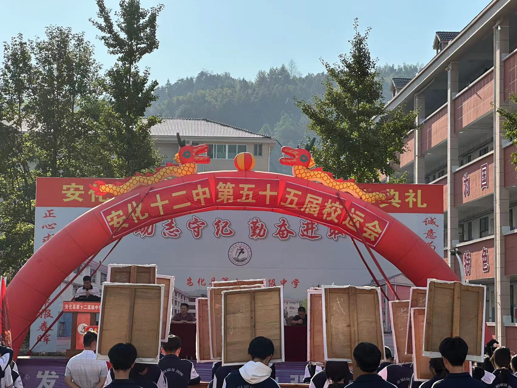 本网讯 10月17日下午,安化十二中第五十五届校运会开幕式于学校操场举行。 开幕式上,各班代表队带着青春激扬的活力,踏着铿锵有力的步伐,气宇轩昂、精神抖擞,展现了十二中同学少年的蓬勃朝气。开幕表演各班方阵各出奇招、精彩绝伦,花样繁多、层出不穷,师生共舞更是别出心裁。表演结束后,全体师生庄严肃立,进行升旗仪式。 组委会执行主任、副校长黄灿宜致开幕词。她衷心希望每位运动员都能发扬更高、更快、更强的奥运精神,安全参赛、文明参赛、规范参赛,精神饱满、斗志昂扬,在比赛中拼出成绩、赛出风格。 裁判员代表老师夏威夷和运动员代表学生李卢嘉分别庄严宣誓,他们表示将秉持公平公正的原则和积极、饱满、热情的态度弘扬体育精神,在本次运动会上赛出风格、赛出水平。主裁判员谢海航老师宣布比赛日程安排及注意事项。 最后,组委会主任、副校长宣布安化十二中第五十五届校运会正式开幕!