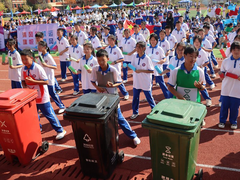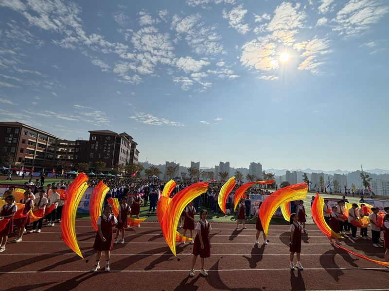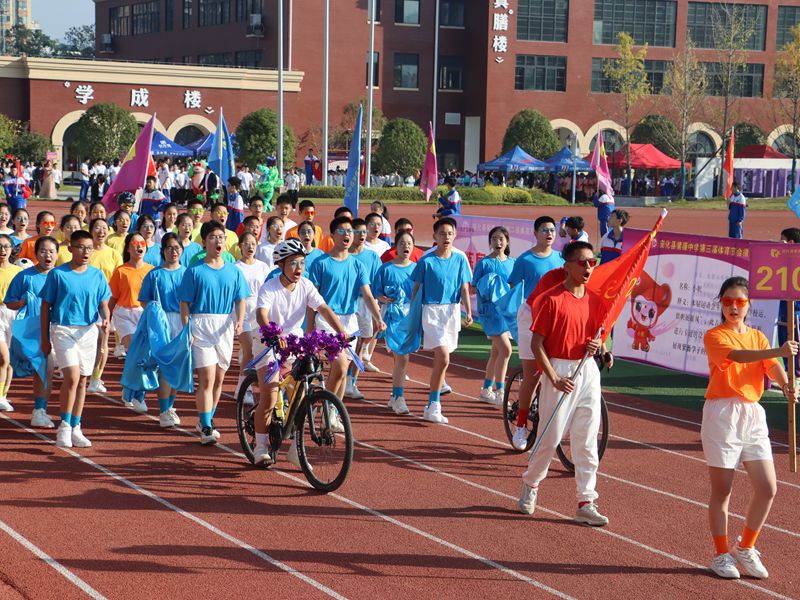 本网讯 10月18日上午,紫薇中学以“清风伴校运,旗帜展雄风”为主题的第三届体育节开幕,全校师生近两千人参加了此次开幕式。 伴随着雄壮激昂的运动员进行曲,国旗方阵、校旗方阵、会标方阵、彩旗方阵、裁判员方阵的入场拉开体育节序幕。紧接着,34名运动员方阵依次走过主席台,以精彩的入场表演,接受学校领导和全校师生的检阅。在一声声喝彩声中,在充满力量感和艺术感的表演中,开幕式达到高潮。 在庄严的国歌奏响时,五星红旗冉冉升起。鲜艳的五星红旗下,是同学们青春自信的脸庞。随后,该校副校长李华集致开幕词,裁判员和运动员代表宣誓,由总裁判长宣布竞赛规程。最后,由该校校长曹文武宣布正式开幕。 彩旗缤纷染层林,秋意盎然满校园。据悉,紫薇中学此次体育节将持续三天,期待紫薇学子们在赛场上的精彩表现。