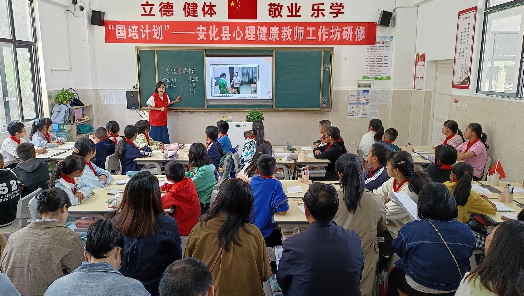 本网讯 10月18日,“国培计划”——安化县心理健康教师工作坊研修暨2023年安化县教师发展中心送教助学志愿服务活动在古楼乡完小隆重举行。教师发展中心副主任陈鹏飞,古楼乡中心学校校长尹立芳、副校长苏建明,古楼乡完小校长刘刚及来自安化县库区片区的30余名心理健康骨干教师出席活动。 活动现场,授课教师谌巧华、龙一平分别以“让梦想开花,让人生增值”“拿捏爱的冲动”“我是情绪的小主人”为主题,从学生感兴趣的不同方面出发,通过讲故事、看短片、小游戏等环节,深入学生心灵,引发学生共鸣,引导学生认识自己的情绪,掌控自己的情感,摆脱不良情绪带来的消极影响,做情绪的主人。 课程结束后,听课教师们对今天的心理健康教育活动进行评课、议课和学习,教师们再次认识到心理健康教育的可操作性和重要性。 本次活动,有利于提高学生的心理素质和应对压力的能力,同时也对古楼乡完小心理健康教育工作的开展起到积极的推动作用,为今后学校心理健康教育工作的深入开展打下了坚实的基础。(通讯员 周文斌)
