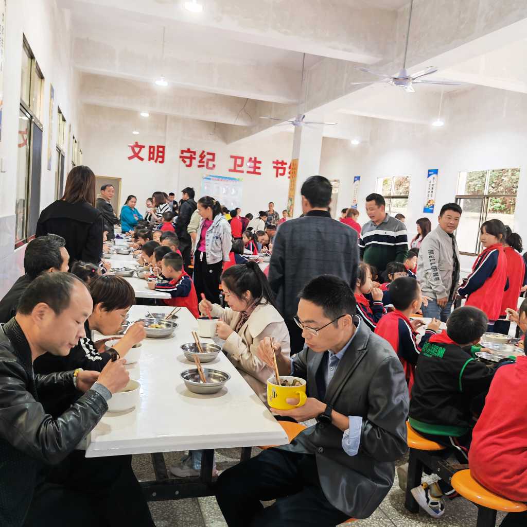 本网讯 10月13日中午,文溪完小餐厅里出现了一群陌生的身影,原来是在校学生的家长们来学校参加家长会。
