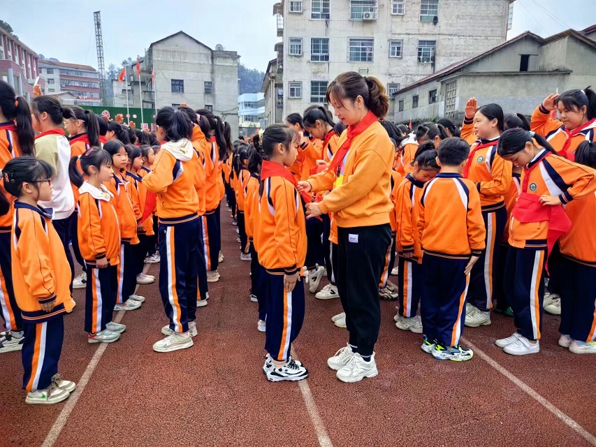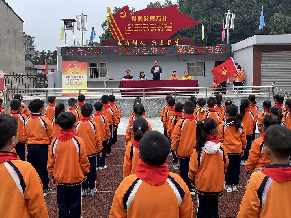 本网讯 10月13日,东坪镇吴合完小举行“红领巾心向党 感谢你的爱”2023年少先队建队日新队员入队仪式。 活动伊始,伴随着激昂的出旗曲,全场少先队员立正敬队礼。旗手们步伐铿锵,队员们齐唱《中国少年先锋队队歌》。少先队辅导员陈娟娟宣布新入队队员名单。校领导和少先队员代表为新队员佩戴红领巾,并在队旗下互敬队礼。 校长林群丰向全体少先队员送上节日的祝福,希望队员们听党话、跟党走、感党恩。在星星火炬的见证下,队员们洪亮的呼号声表达出为共产主义事业奋斗的决心! 该校全体少先队员们将用自己的实际行动,为队旗增光添彩,为祖国的明天描绘更绚丽的蓝图!