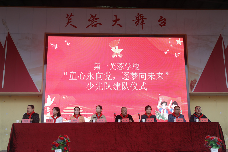 本网讯 10月13日, 在中国少年先锋队成立74 周年之际,安化县第一芙蓉学校举行“童心永向党,逐梦向未来”建队仪式。团县委书记刘沐华、教育团工委书记李锦辉、家长代表张敏应邀出席。