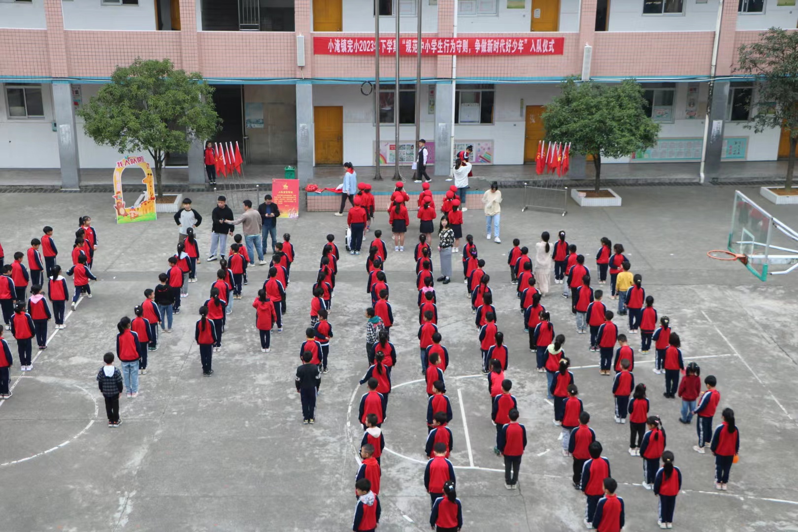 本网讯 10月13日上午9点,小淹镇完小少先队大队部在操场举行“规范中小学生行为守则 争做新时代好少年”新队员入队仪式。本次活动主要为二三年级入队。 在入队前,一年级的小朋友就时刻准备着,少先队大队部认真组织开展队前教育活动,小队员们认真学习了少先队知识,积极上交了入队申请书。 仪式现场,伴随着激昂的出旗曲,少先队旗手和护旗手迈着整齐的步伐进入会场,队旗飘扬。紧接着,鼓乐队的同学们齐齐上阵庆祝新队员们入队,全体队员高唱《中国少年先锋队队歌》,嘹亮的歌声在校园内回响。党员教师带头和老队员一起为142名预备队员佩戴红领巾。 大队辅导员卢进为一年级新中队授队旗,一面旗帜,一份使命,队员们将在少先队组织中完善自我,勇攀高峰。卢进代表少先队大队部向新入队少先队员致辞,并提出希望和要求。 |