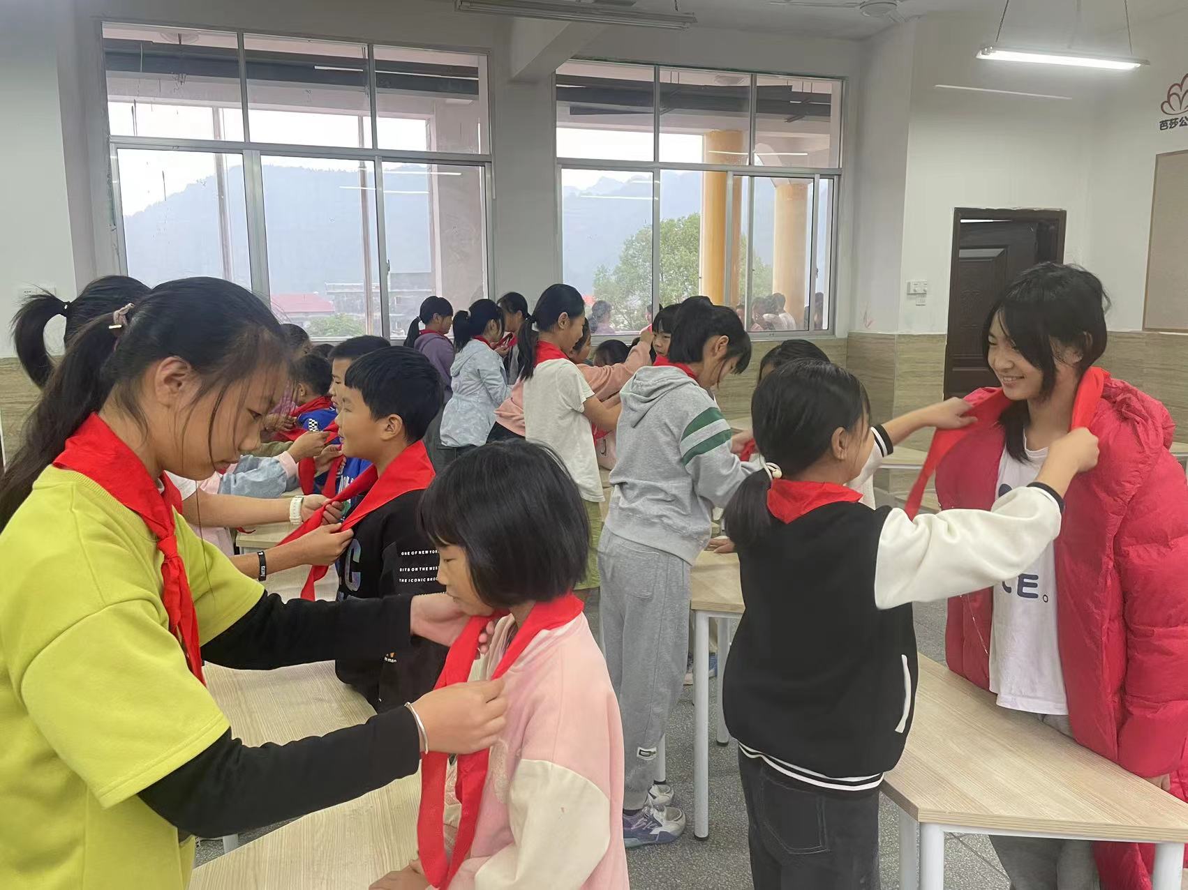 本网讯 10月13日上午,奎溪坪完小举办了“童心向党我最行”为主题的新少先队员入队仪式。 活动中,少先队员齐唱《中国少年先锋队队歌》,少先队大队辅导员饶子康老师宣读新队员名单,并向新入队的少先队员提出了要求。紧接着,老队员们为新少先队队员佩戴了鲜艳的红领巾,此刻,在鲜艳的队旗下,全体少先队员们庄严宣誓。最后,少先队辅导员带领少先队员们大声呼号:“时刻准备着!”响亮的呼号声回荡在会场,相信新队员们会牢记党的教诲,争做新时代好少年。 据悉,各班利用班会课组织预备队员学习“队前教育”知识,如敬队礼、系红领巾等,并开展相关知识的活动。