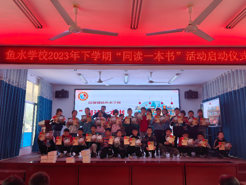 本网讯 10月10日下午,清塘铺镇鱼水学校2023年下学期“同读一本书”活动启动仪式如期举行。 该校校长赵军语重心长地强调了阅读的重要性,号召全体师生与书同行,享受阅读带来的乐趣。教导主任李国顺宣布了本期共读的书籍:《吹牛大王历险记》《中国古代神话》《稻草人》《夏洛的网》《会飞的教室》《宝葫芦的秘密》《佐贺的阿嬷》《天蓝色的彼岸》。随后,学生们以班为单位,从赵军手里领取了同读的书籍。 据悉,本次“同读一本书”活动后续还会进行 “优秀读书笔记”“优秀读后感”“优秀手抄报”“阅读之星”“书香班级”等评选,以求让活动落到实处,让阅读成为习惯。