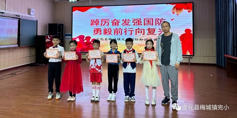 本网讯 9月25日,梅城镇完小开展了“踔厉奋发强国防,勇毅前行向复兴”的主题演讲比赛。 四十多名选手围绕“国家兴亡,匹夫有责。”为主题展开演讲,浓厚的国防意识,真挚的爱党、爱国、爱军情感、光荣感、责任感和使命感表现得淋漓尽致,誓愿长大建设祖国,献身国防。选手们精心准备,内容高质,精彩纷呈。 本次演讲比赛既是一场竞争,也是一场生动的国防教育课。进一步激发学生敬重军人、筑牢关心国防、热爱国防、建设国防和保卫国防的政治热情,树立“国无防不立,民无兵不安”意识。普及国防教育,弘扬伟大的民族精神,为要坚持社会主义办学方向,培养德智体美劳全面发展的社会主义建设者和接班人而努力奋斗。 学校领导和年级组长为获奖选手颁奖。