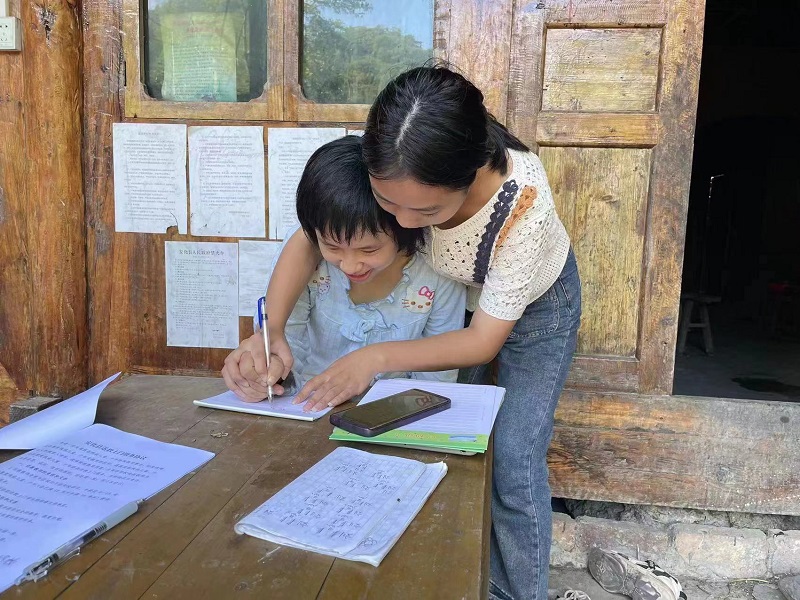 为了慧慧能够写自己的名字,仇思慧手把手地教她名字,经过一番努力,慧慧能一个一个的字把自己的名字写出来。为进一步提高慧慧的学习兴趣和动手能力,夏竞通过游戏教授数字,让她在实际操作中找到了乐趣。