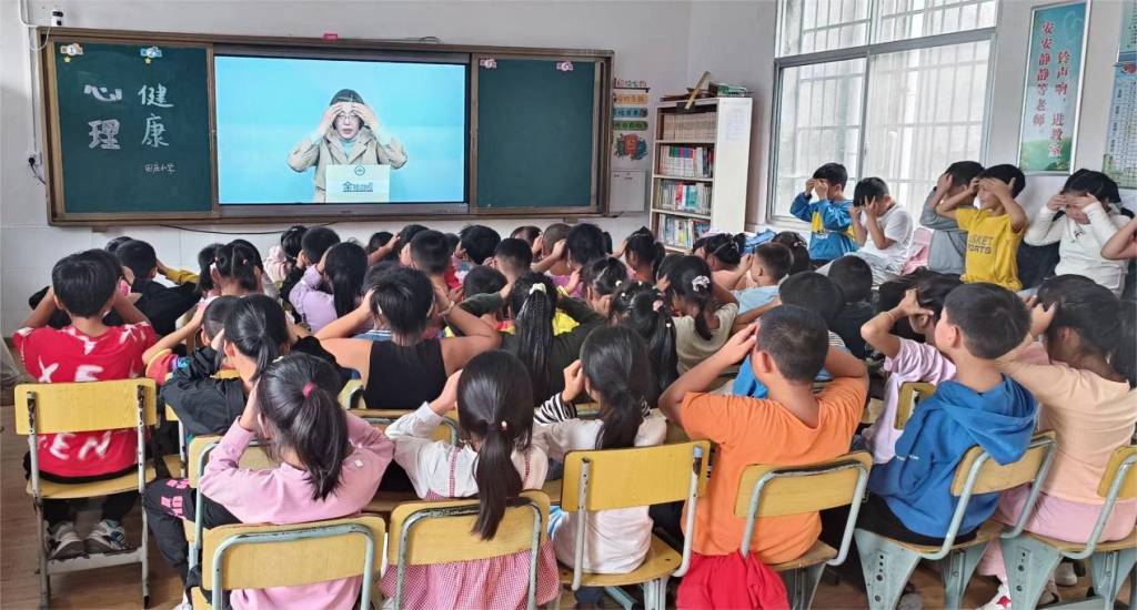 课堂中,教导主任谌盈与孩子们互动交流,让学生了解什么是健康的心理状态,什么是不健康的心理状态;详细讲解了在学习、生活中遇到不开心、别人不理解等问题的解决办法;教会学生掌握几种简单有效的自我调节法,学会如何应对日常生活中的问题;要求学生自尊自信、乐观向上,保持阳光心态,培养健全人格。