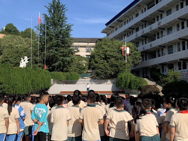本网讯 9月18日,清塘铺镇第一完小全体师生齐聚操场举行了庄严的升旗仪式。 随着冉冉升起的国旗,该校全体师生满怀激情高唱国歌。 防空警报响起,全体师生集体默哀。 该校副支书曹泰友,以一曲《松花江上》开启了他的国旗下讲话。鉴往事,知来者。他首先带领同学们回顾了92年前的今天,日本侵略者发动了震惊中外的“九一八事变”,并在此后对东北人民进行了极其残暴的殖民统治和掠夺,这一屈辱的历史。他号召同学们铭记历史、缅怀先烈、珍爱和平、自强不息。随后,他向同学们宣讲了党和政府为了改善农村学生营养状况,提高农村学生健康水平,而实施的“农村义务教育学生营养改善计划”,希望同学们心怀感恩,努力学习,长大为祖国和人民做贡献。 该校党支部书记、校长刘小燕认为:少年儿童的远大理想、坚定信念,是一个国家、一个民族无坚不摧的前进动力。新时代的爱国主义教育必须与时俱进,以激发少年儿童的民族自尊心、自信心和自豪感为目标,使之满怀“少年强则国强”的使命感。