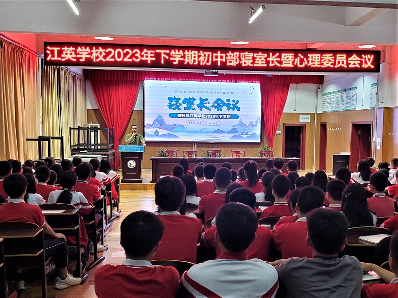 本网讯 9月16日,安化县江英学校初中部在多功能报告厅组织召开2023年下学期寝室长暨心理委员会议,学生领导、老师和200多名寝室长、心理健康委员和心理健康监督员参加,会议由学生处干事吴晨老师主持。 会上,吴晨老师以《齐心协力,打造温馨家园》为题,全面总结了上学期工作,宣读了学校寝室规章和心理健康委员、心理健康监督员制度,对寝室卫生标准、寝室达标情况以及寝室日常工作内容进行了详细讲解;对心理健康委员和心理健康监督员职责、任务提出了严格要求。他指出,寝室长、心理健康委员和心理健康监督员应承担起督促宿舍成员、管理宿舍卫生、关注成员心理健康的责任。他告诫各位要切实履行和遵守寝室规定,关注同学们的心理健康。 随后,学校对寝室长、心理健康委员和心理健康监督员进了培训,对上学期获得优秀的寝室和表现突出的寝室长、心理健康委员和心理健康监督员进行了表彰和奖励。寝室长、心理健康委员和心理健康监督员代表也上台表达了决心。 最后,学生处主任孙柏林强调了要做好上传下达工作的重要性,尤其是要及时向寝室成员传达相关信息,严格遵守相关要求,为打造良好的寝室环境做出自己应有的新贡献。 浓浓“寝”谊,你我共建。本次会议使寝室长、心理健康委员和心理健康监督员进一步强化了责任意识,这对共建文明寝室和文明校园建设打下了坚实基础。
