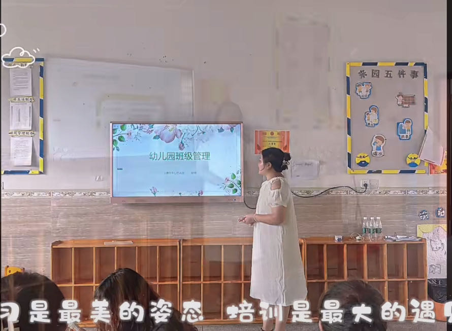 本网讯 9月15日中午,长塘镇中心幼儿园的老师就“什么是班级管理的最佳状态”展开了讨论。有的老师说:“家长满意、孩子开心”有的老师说:“最重要的是与同事合作有条不紊”还有的老师说:“我觉得最重要的是要创建和谐的班级氛围”。在老师们讨论声中,为本次培训拉开了序幕。 在培训中,该园保教主任胡辉从班级管理的最佳状态、班级管理的内容、班级常规管理、班级管理小锦囊等方面对老师们进行了系统的培训。尤其是在常规方面,建议老师们根据小中大年龄特点建立班级常规,还分享了一些常规建立的小妙招,大家都觉得受益匪浅,在以后的班级常规管理都可以运用到。 据悉,该园后续就“班级管理”还会组织有经验的班主任进行班级管理经验分享,还会结合师徒结对活动,让工作经验丰富的班主任帮扶经验缺乏的年轻班主任,尽快熟悉班级管理工作。