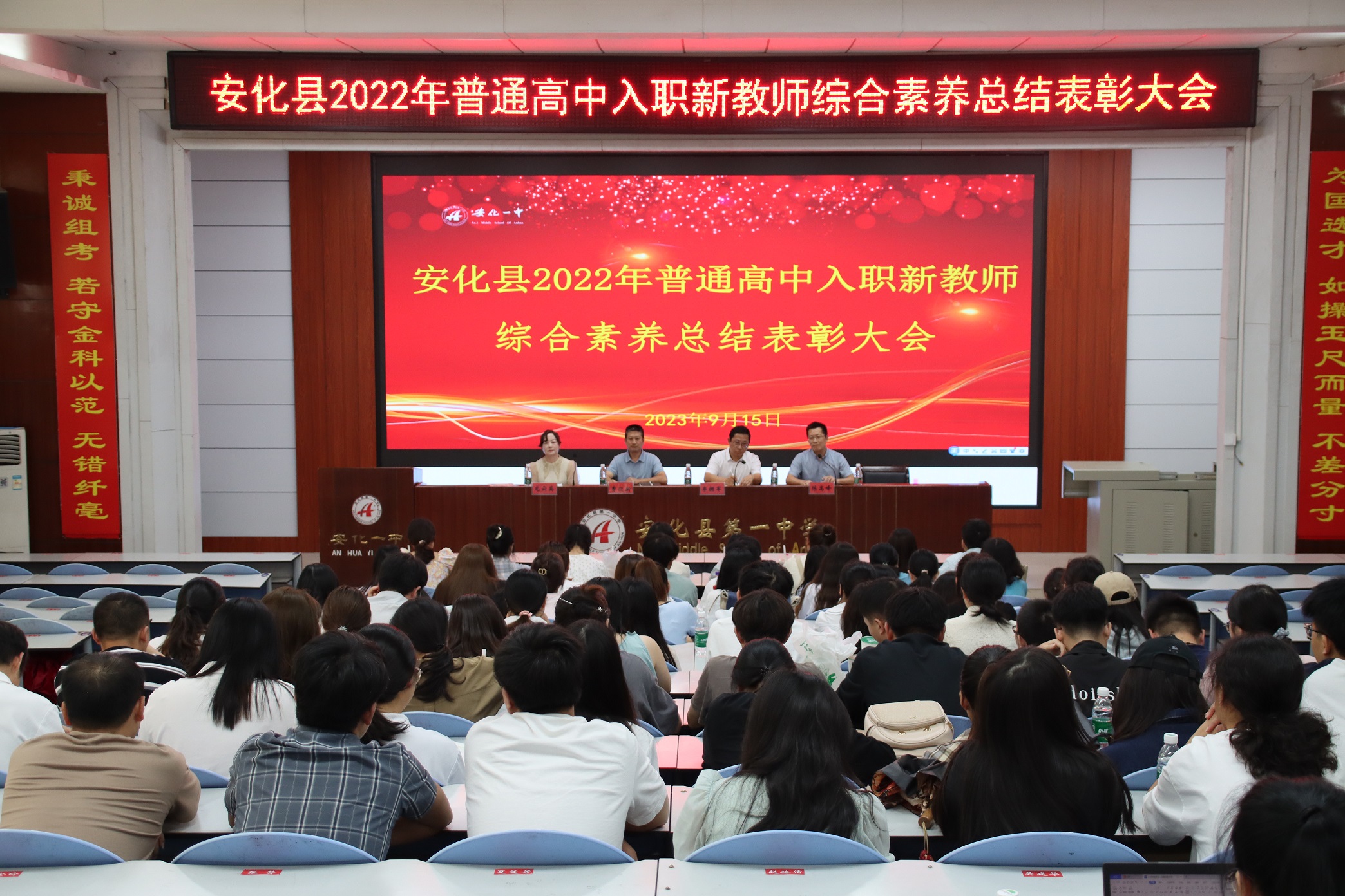 本网讯 9月15日,由安化县教师发展中心主办的2022年普通高中新入职教师业务考试暨综合素养总结表彰大会在安化一中培英楼多功能报告厅举行。安化县教师发展中心相关领导、高中教研员、2022年普通高中新入职教师参加活动。 上午,全体新入职教师参加业务考试。 下午,全体参会人员参加安化县2022年普通高中新入职教师综合素养总结表彰大会,活动由县教师发展中心副主任陈高峰主持。 安化县教师发展中心主任李拥军作《教师职业理想与职业规划》总结发言。他用自身的经历告诉大家,一位好老师,是一个人人生中最宝贵的经历与财富。因此,每一位老师都应该不断提升自我,不辜负学生、家长与学校的信任。教师要有理想,因为承担着为国育才的重任,没有理想,就没有目标,就没有动力,就不可能坚持不懈地奋斗。要将“学高为师,身正为范”作为自己一生追求的目标,真正做到“一生只为一件事而来”。他强调,想要站稳讲台,想要真正成为一个好老师,更需要自己不断探索,用实践走出一条适合自己的职业发展之路。 安化一中党委委员、副校长曹迎新强调青年教师培养的重要意义,并介绍了我校为加速青年教师快速成长而采取的主要措施,他提出,学校十分重视本次综合素质大赛,由教科办公室牵头,为每位参赛教师配备了指导老师,帮助他们提升与成长。 县教师发展中心副主任龙云英作总结发言,宣读本次综合素养大赛表彰结果。本次大赛取得了可喜的成果,新入职教师在培训中得到了快速的成长。同时,她指出了新入职教师在常规工作、说课、业务考试等方面存在的问题,希望所有教师能正视问题、加以改进,并不断锤炼作为新时代教师的六项“新基本功”。。 新入职教师代表安化二中罗慧、安化一中侯文静分别就本次综合素质大赛分享了自己的经验与感悟,她们表示,将在今后的教育生涯中不断提升自我,一路学习,一路成长,踏实工作,追光前行。(通讯员 侯文静) |