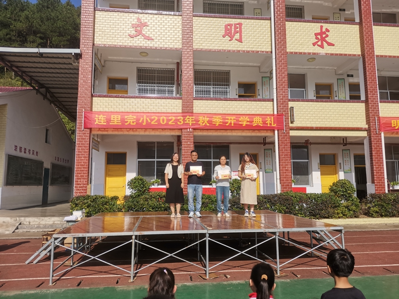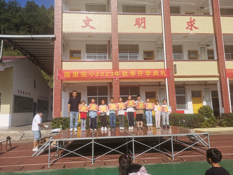 本网讯 9月15日渠江镇连里完小全体师生齐聚操场举行秋季开学典礼。 本次开学典礼,首先由桃坪村村主任周小英讲话,周小英鼓舞同学们要树立远大的理想、踏实的学习态度、铁一般的意志和坦诚做人的品质。接着由该校校长胡勤读讲话,胡勤读讲了一个故事,倡导同学们用知识武装自己,用知识改变未来。 典礼上,为优秀教师颁发了荣誉证书和奖品,为上学期期末成绩优秀的同学颁发了奖品和奖状,主持人每宣讲一批获奖名单,台下的同学们总有热烈的掌声表示祝贺。 胡勤读表示:自本学期以来,我能感受到老师们的工作态度,同学们的学习态度,都有了不小的改变,相信在老师、学生和家长们的共同努力下,连里完小未来将成为一所充满希望、充满活力的学校。