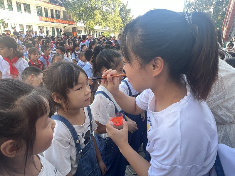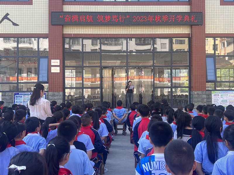 本网讯 9月15日,奎溪镇完小举行“奋楫起航 笃行致远”2023年秋季开学典礼。 典礼在庄严的国歌声中为开学典礼拉开序幕。教导主任龚彩对全体师生作了热情洋溢的新学期致辞,向师生们提出了新学期的奋斗目标和发展方向。希望老师们不断加强学习,照亮学生的人生、成就孩子的梦想。希望同学们勤奋学习,养成良好的行为习惯,在新学期努力拼搏,成就更好的自己。 一年级老师代表方顺灵老师表示,作为一名人民教师,感到光荣与自豪,也感到任重而道远。新的学期,我们都应该时常回望自己的教育初心,不丢失自己,不失于教育,立志做一个有担当、有责任、有理想、有信念的好老师! 刘亚芳老师作为优秀教师代表作了发言。她送给同学们两句话:责任心,迈向成功的起点;好习惯,快乐成长的阶梯。她倡导老师们要用鲜活的知识去满足学生求知的欲望,用灵动的音符去弹奏学生心灵的乐章,用和煦的师德春风去抚慰学生稚嫩的灵魂。 学生代表易梦洁同学对老师们的无私奉献表示感谢,对一年级的新同学表示欢迎,并希望同学们戒骄戒躁,自立自强,努力学习。 “童蒙之学,始于衣冠;先正衣冠,后明事理。”在老师的细心指导和示范下,孩子们学习整理衣冠。“痣”通“智”,学校领导和老师一起手持毛笔印朱砂,祝福孩子们从此聪明智慧,发奋图强。 千里之行,始于足下。新学期奎溪镇完小全体师生,奋楫起航、筑梦笃行,以奋斗者的姿态共同书写美好奎小新学年的新辉煌!