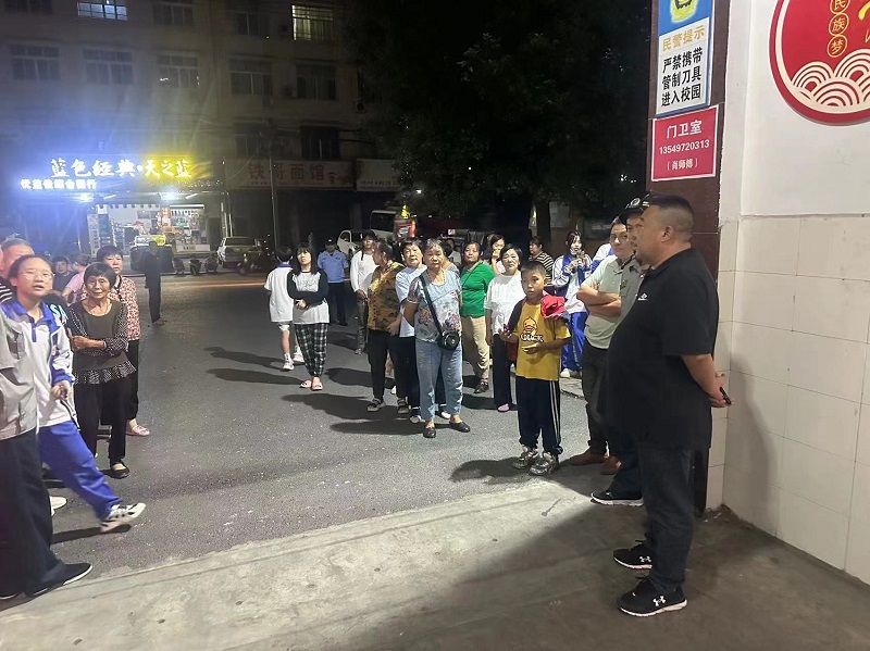 本网讯 9月14日晚上8点,小淹镇中心校校长李胜等人来到小淹中学校门口,巡查学生下晚自习后的纪律与安全。 中学正门处于陶澍街中间位置,离岔路口红绿灯不远,来往车辆多。学生放学离校时段特设立“护学岗”,是学校进一步深化校园警务工作的客观要求,两位警务人员严格按“定人、定岗、定责、定时”的要求,接学生的家长排好队,通力协作。政教主任和中心校负责安全的专干巡逻防控,和公交车司机随时保持联系,相互配合,维护好学生放学时交通秩序,消除安全隐患。 通学生和乘车学生走后,李胜还专程到了男生宿舍查看学生就寝情况。