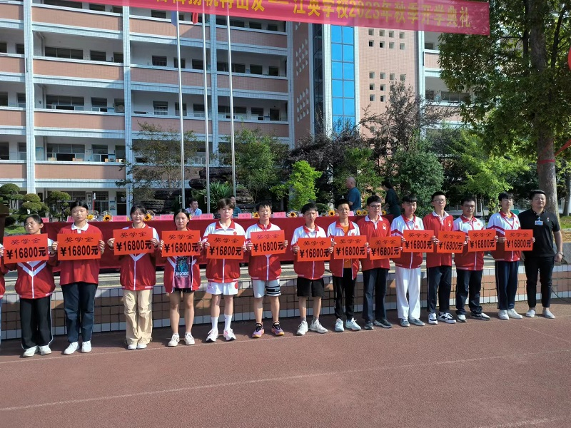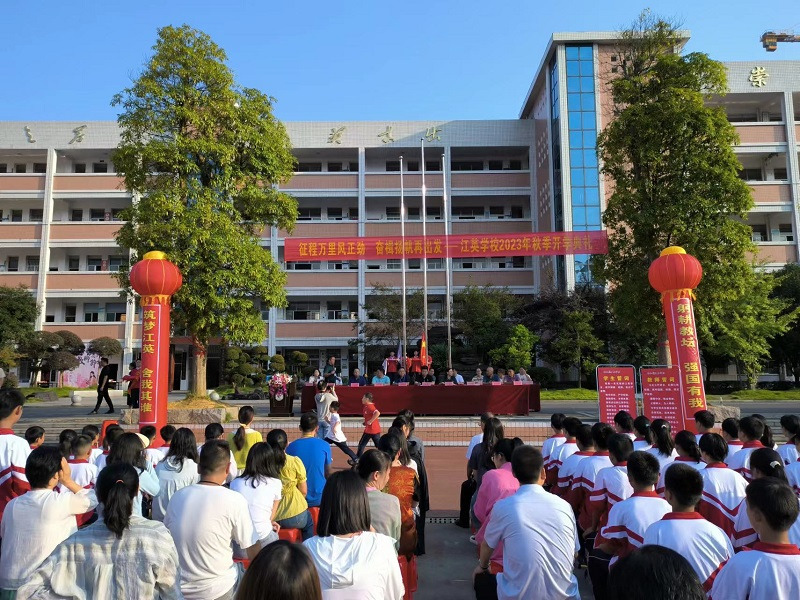 本网讯 9月10日上午,风和日丽,阳光灿烂,安化县江英学校在初中部田径运动场上举行2023年级秋季开学典礼,学校领导和全体师生及家长代表共4000余人参加,活动由党支部副书记兼小学部校长刘艳主持。 学校党支部书记兼校长谢豪以《征程万里风正劲,重任千钧再出发再出发》为题致词。他说,过去的一学年,是丰收的一学年。在上级各部门的正确指导下,学校围绕“五创新、五优化”办学要求,积极学习贯彻党的二十大精神,全面提升办学水平,在教育教学质量上又获得了新的突破。学考、统考、中考大获丰收,并先后获得“湖南省文明校园”“湖南省劳动教育实验学校”“湖南省民办教育规范办学先进单位”“国培计划优秀送培单位”四个省级奖及多个市、县级奖。展望新的学期,他提出要“做一个担责任的江英人、做一个爱读书的江英人、做一个讲文明的江英人、做一个有理想的江英人”的四条建议,与全体师生共勉,希望大家怀揣梦想,持之以恒,创造江英的新荣光! 在小学一年级学生的“开笔礼”仪式后,家长代表、学生代表、教师代表等一一上台发表讲话。作为2023届中考的全县第二名的杨宇同学,以自己的奋斗经历勉励同学们:“不管学的是什么,一定要找到自己耕耘的那片土地,把辛劳的汗水结结实实地洒下去,把青春烙印在深情的大地上!” 颁奖仪式上,一笔笔沉甸甸的奖学金从学校领导们的手中传递到了优秀学子们的手中,一束束祝福“教师节快乐”的鲜花从同学们的手中送到了老师们的手上,全校师生们唱着歌儿,迎着阳光,开启了充满希望的新学期!