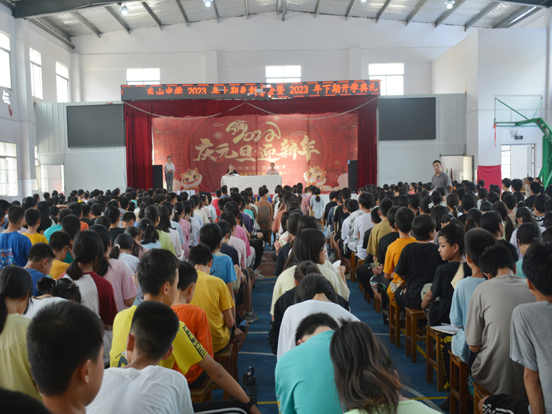 本网讯 近日,东山中学全体师生欢聚学校风雨球场,隆重举行了2023年秋季开学典礼。 典礼由教导主任邓庆琳主持,一共有五个仪式。第一个仪式,学生代表教师节致词,预祝辛勤的园丁节日快乐。第二个仪式,邓庆琳作了开学工作报告。她简要回顾了上学期教育教学情况,肯定了学校在中考和镇统考取得的优秀成绩,通报并表彰了一大批勤学好问、品学兼优、班工作认真负责的学生,并提出了本期教育教学工作设想。第三个仪式,各年级学生代表上台分享了学习经验和方法,新老师黄波代表全体教师表达了努力工作的决心,并勉励学子志存高远,学有所获。第四个仪式,团支书田艳对宣传和广播工作进行了具体安排,安全专干严振宇针对学生管理提出了几点要求。第五个仪式对受表彰的学生进行了颁奖。