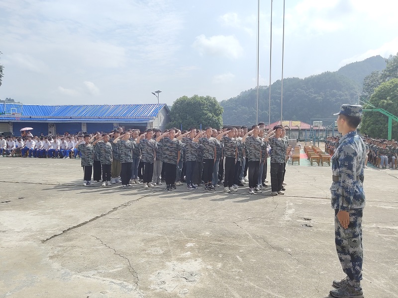 本网讯 9月8日上午,烟溪镇中学举行2023级新生军训会操表演。 表演在激昂高亢的国歌和升旗仪式中拉开序幕,在198班教官夏宇轩、197班教官夏宇杰、196班教官刘俊茂、195班教官罗崇秋的指令下,踏着坚定的步伐、喊着嘹亮的口号依次进行了会操表演。他们抬头挺胸、步伐沉稳,在主席台前向领导们展示自己的训练成果,立正、稍息、停止间转法、敬礼、礼毕等动作整齐划一。 政教主任尹文俊对本次军训会演进行了总结。他表达了“赞扬”“感谢”和“期望”:对同学们出色的表现给予了赞扬;对倾心付出的教官和辛勤陪伴的班主任表示感谢,也对不负青春,挥洒汗水的同学们表示感谢;同时期望同学们在今后的学习生活中继续保持军训中表现出的坚韧不拔的意志。 副校长刘振宣读表彰名单,并为获奖集体和个人颁发奖状,鼓励他们继续发扬吃苦耐劳、勇于拼搏的精神,并期待他们在今后取得更加优异的成绩。