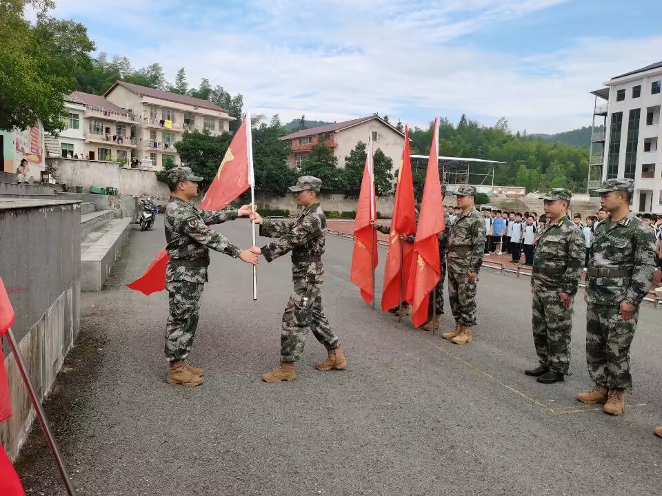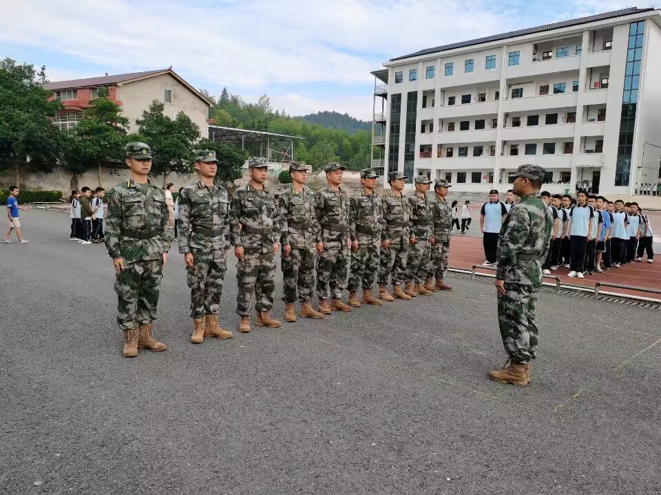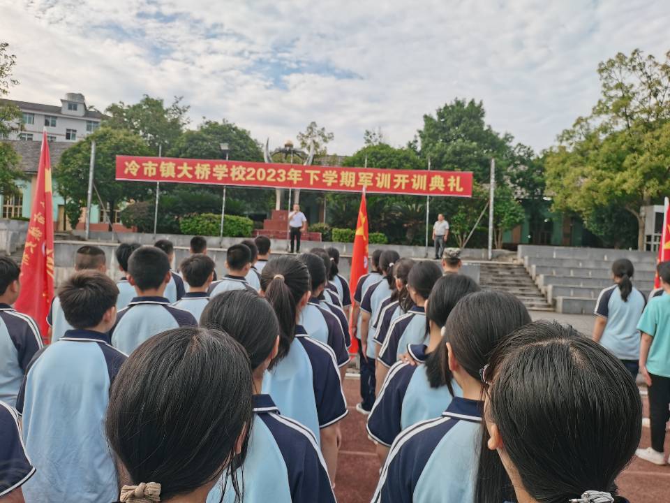 本网讯 9月2日,冷市镇大桥学校组织6至9年级全体学生,举行2023年秋季军训开训仪式。 上午8点10分,随着悠扬的进行曲响起,各班学生以连为单位在教官和班主任带领下,迈着矫健的步伐,意气风发有序进入运动场,到达指定地点,整齐列队。各位教官英姿飒爽,纪律严明,向全体师生表演了站姿、齐步走、敬军礼等。学生代表、教官代表分别登台庄严宣誓,表达了严格遵守训练纪律,刻苦训练,磨砺意志的坚强决心。以及依法带训,文明带训,以情带训,安全带训的原则。校长黄军向总教官授训练营旗,总教官向各连连长授旗,黄军希望大家珍惜机会和缘分,认真训练,发扬特别能吃苦,特别能战斗的精神,一切行动听指挥,训练出军人作风和钢铁意志。在全体师生和教官的期待下,黄军宣布军训开始。 据了解,为确保此次军训圆满顺利,制订了周密的军训方案,召开了动员会。训练内容包括:列队训练,内务整理,团建活动,学唱军歌,学习有关制度,开展思想教育,法制教育,校园清洁工程等,时间为期6天。