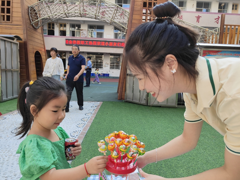 本网讯 9月1日,梅城镇中心幼儿园用满满的仪式感按下“启动”键,欢迎100名小班新生和400多名中大班孩子回家。 干净整洁的校园环境、焕然一新的教室布置、醒目的大型欢迎展板、可爱的卡通动物礼仪天使、棒棒糖和旺仔牛奶……无不体现出幼儿园的用心与周到,园内处处充满了生机与活力,处处洋溢着温馨与幸福。 据悉,该园从卫生打扫到环境建设,从教师内训到报名筹划,提前了一个星期做准备。梅城镇政府也对开学工作非常重视,当天,镇政府志愿者、派出所所长刘剑波、民警喻选民等一行10人来到幼儿园进行了开学安全督查,为孩子们的安全保驾护航。