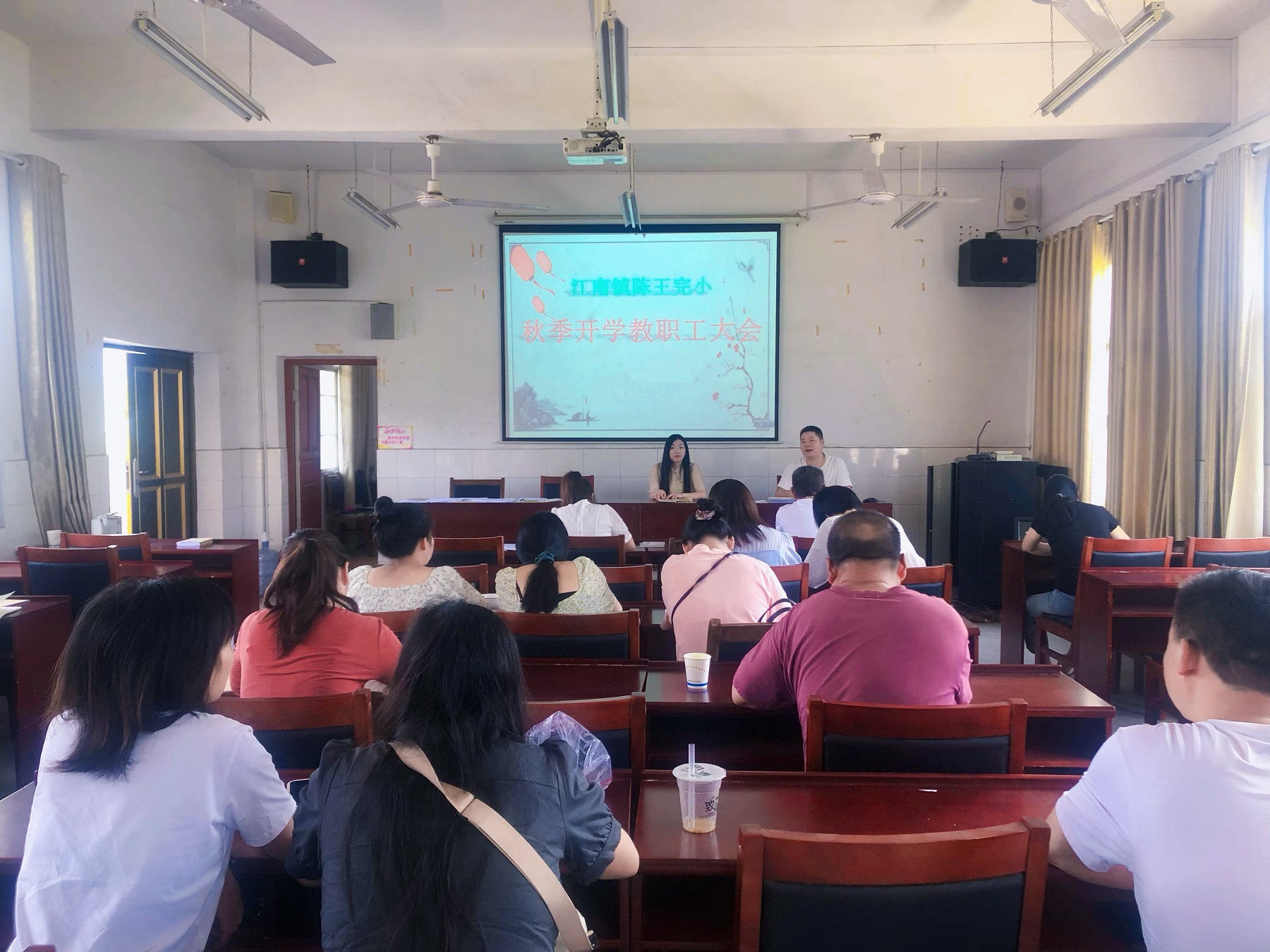 本网讯 8月31日上午,江南镇陈王完小组织全校教师召开2023年秋季开学工作部署会。 会前,全体新进教师以新颖独特的方式进行了自我介绍。 会上,政教主任郑逸雯就德育工作对全体班主任老师提出具体要求;办公室主任吴旋组织大家学习《关于进一步加强中小学教师队伍管理的若干规定(试行)》的通知,随后组织全体教师签订安全责任状;教导主任刘安乔就本学期教师教学工作进行周密安排。 学校校长陈娜作总结时表示,此次会议为新学期工作的有序开展和推进指明了方向。新学期,陈王完小全体师生必定锚定蓝图,勇担使命,以崭新姿态向更高峰迈进!