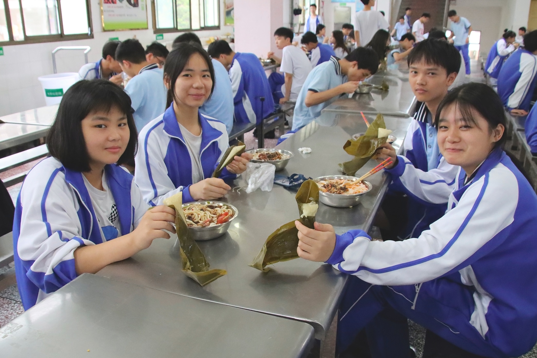 农历五月初五端午节,是我国传统节日之一,历史悠久,更是集拜神祭祖、祈福辟邪、欢庆娱乐及饮食为一体的民俗大节。为了让在校师生过好端午,让大家即使不在家中也能感受到节日的味道,食堂工作人员一早便准备好清香可口的粽子,早餐时就将“爱心粽”送到师生们手中。