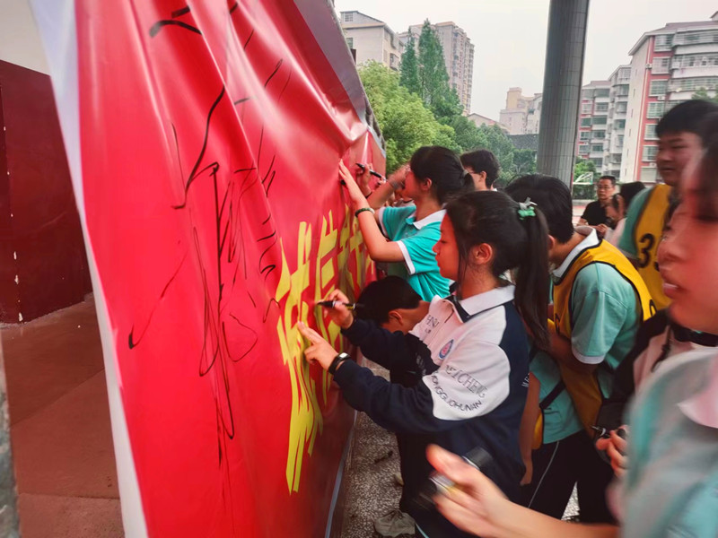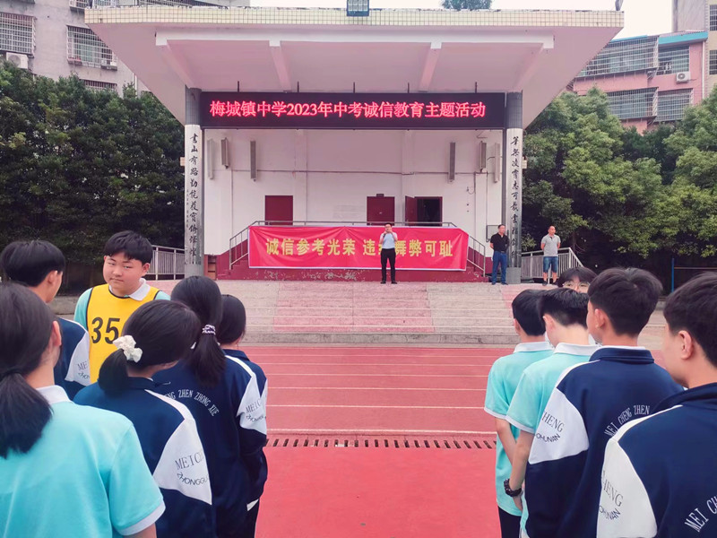本网讯 6月16日上午,梅城镇中学组织毕业班师生开展2023年中考考前指导及诚信教育主题活动。 会上,副校长戴彪对本次考试注意事项做出强调,并向同学们详细介绍考试日程。从考试工具准备、考试时答题的规范和技巧、每堂考试前后的注意事项及考试期间的纪律等方面对即将面临中考的学生提出具体要求。希望同学们不要过于紧张,保持良好的心态,迎战中考。 校长喻选民对全体考生进行诚信教育,强调考风考纪,要求考生树立诚信为本、文明应考、公平竞争的思想观念。 活动结束时,每一位学生在“诚信参考光荣,违纪舞弊可耻”的横幅上郑重签字,承诺以诚信的态度参加中考,自觉严守考纪、诚信做人、诚信考试,为自己的初中学习生活画上圆满的句号。