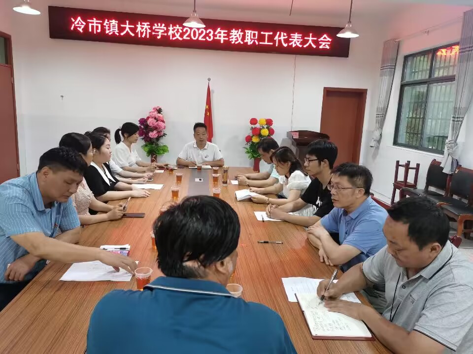 本网讯 6月15日晚,冷市镇大桥学校组织召开全体教职工代表会议,部分校务人员应邀列席参加。 会上,总务处负责人报告学校财务工作,就学校重大项目支出和主要活动经费,以及对工会经费的使用情况作说明。参会代表就有关办学条件改善、队伍建设、办学体制、教师出勤管理、教师绩效考核、班级管理、双减、五育并举,安全教育等共同关注的提案进行讨论审议。工会就怎样当好教职工代表,写好高质量的提案进行具体辅导。 校长黄军向代表报告了一年来的工作情况,将本次职代会收到的9份提案,一一作出答复与说明。并希望教职工代表积极参与学校民主管理,履职尽责,为学校的持续健康发展积极建言献策,贡献智慧力量。 通过认真讨论,代表当场举手表决,审议通过《教师出勤管理制度》《教师绩效考核细则》等制度。