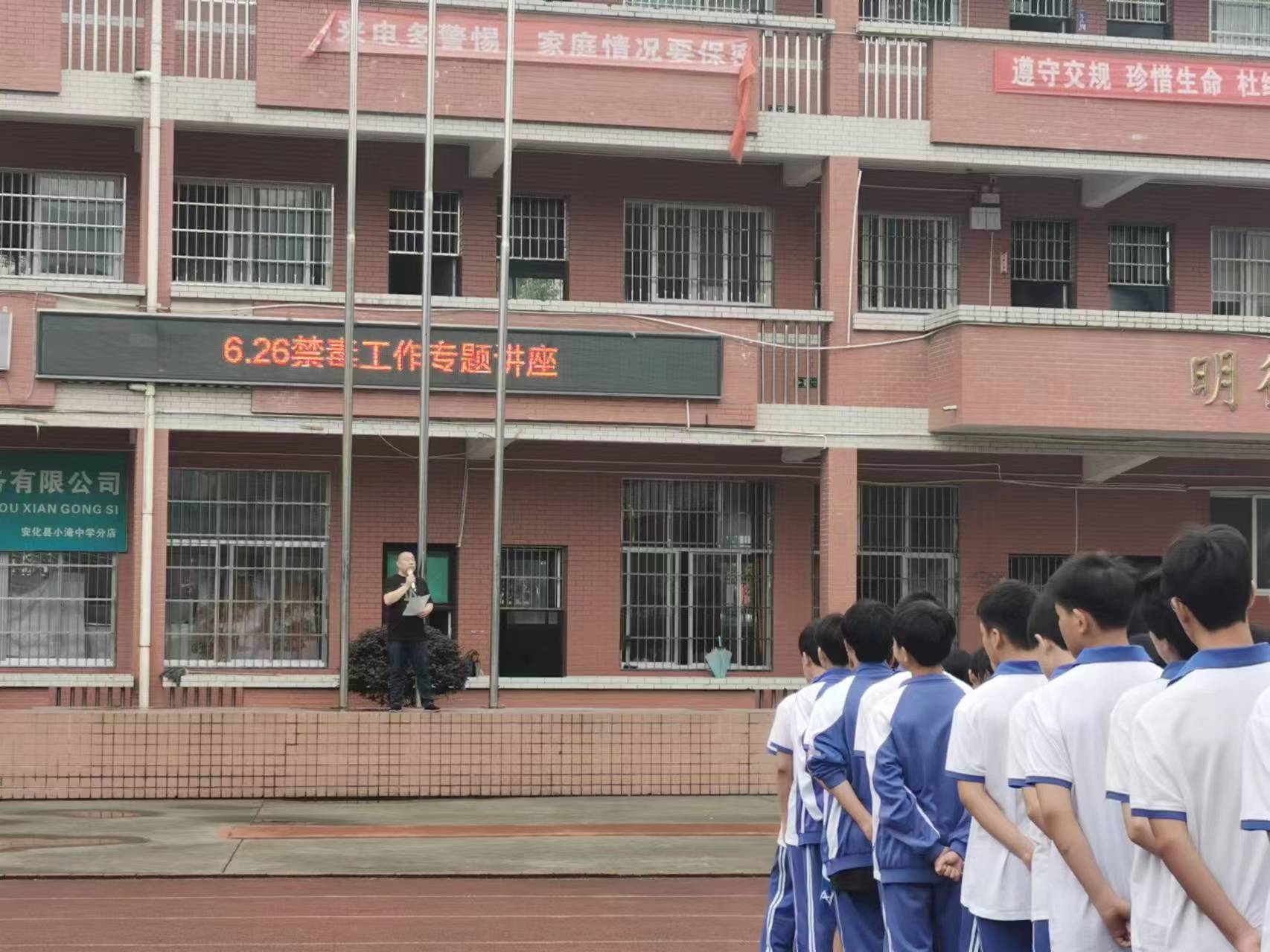 本网讯 6月12日上午,小淹镇中学组织开展学校禁毒宣传教育。活动由校长李胜组织开展,小淹镇中学全体学生参加。