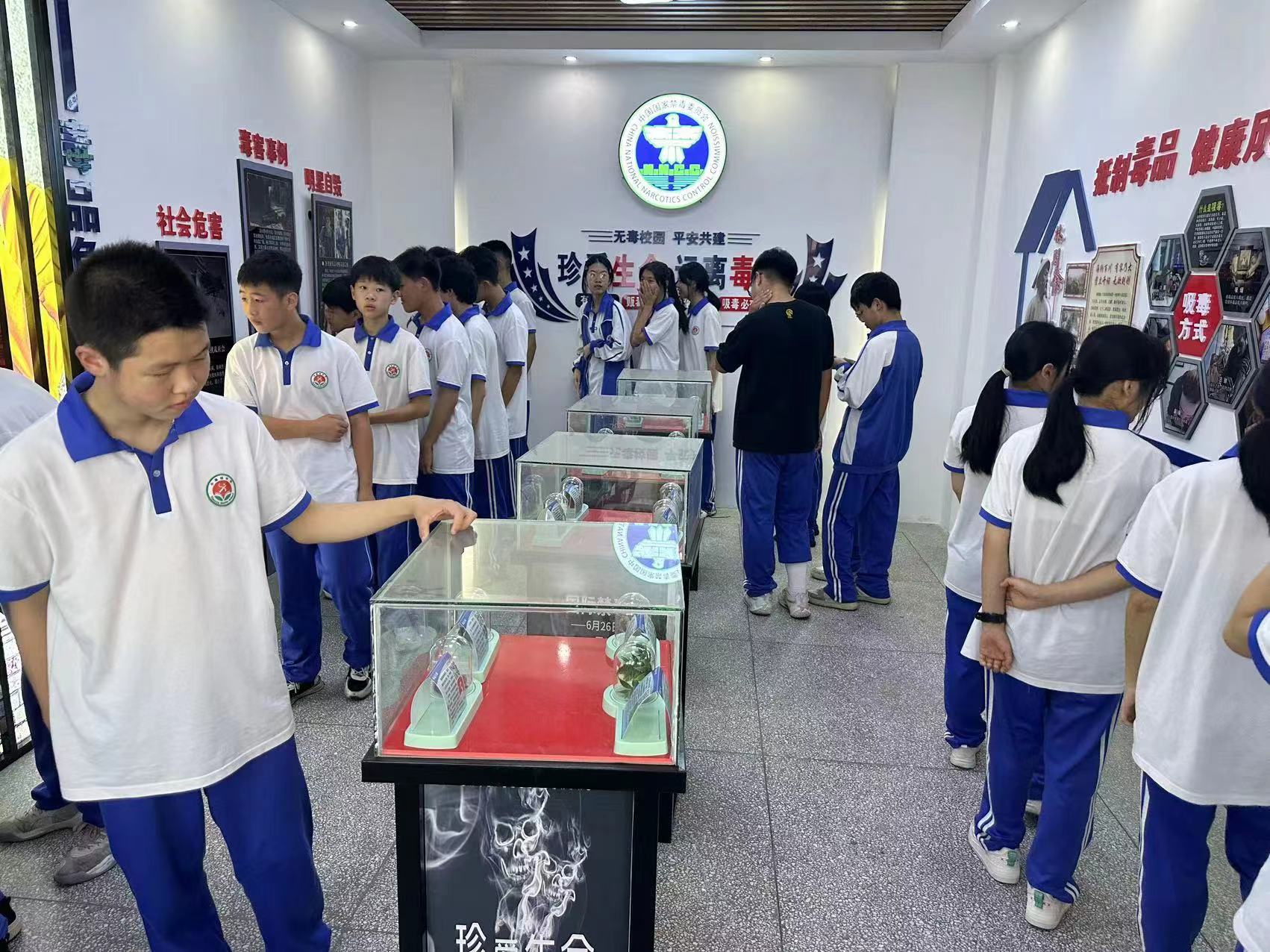在活动现场,班主任老师还带领各班学生有序进入禁毒室参观学习。李胜对参观现场中的学生提出的问题一一解答,整个活动现场气氛活跃。活动的最后,同学们按年级在禁毒条幅上郑重签下自己的姓名,表达坚决抵制毒品的决心。