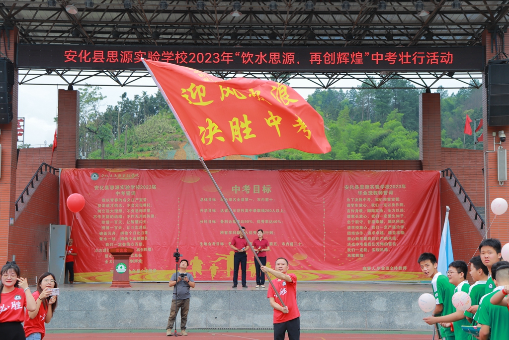 本网讯 6月13日上午,安化县思源实验学校举行中考壮行活动,为即将奔赴考场的八九年级学子鼓劲加油,向他们送上美好的祝愿。 足球场上红毯铺开,教师们站在凯旋门红毯两旁用击掌的方式迎接九年级师生进入会场。本次活动分饮水思源、殷殷祝福、决胜中考三个篇章。在庄严的国歌和校歌声中,国旗和校旗相继升起,九年级学生代表肖攀回顾了三年来的初中生活,表达了对学校和老师的感谢。随后,七年级学生代表李诺涵和教师代表刘思文为八九年级送上祝福,学校校长刘巩元为毕业生们诵壮行寄语,“稳操胜券,圆梦中考”的祝福语响彻会场,呼声一浪盖过一浪。活动在学生们放飞代表梦想的气球中结束。 |
