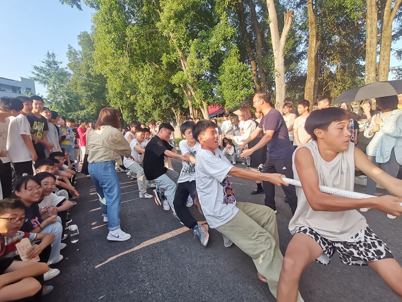 本网讯 6月9日下午,羊角塘镇中学为期五天的毕业班拔河比赛圆满落下帷幕。 本次比赛由学校工会组织,利用学生晚餐后时间分批进行。比赛以班级为单位,采取小组淘汰赛制,每班共15人参赛,其中男生8人,女生7人。比赛现场,各参赛队精心排兵布阵,参赛队员们精神饱满,斗志昂扬。裁判哨声一响,只见参赛队员们立马拉紧长绳,身体下蹲后倾,脚紧抓地面,铆足干劲一步一步向后挪。学校领导、各班班主任、未参赛学生均不由自主地组成啦啦队在一旁奋力为参赛班级加油助威。 经过几天激烈、精彩的角逐,赛出了冠亚季军。该校校长方立安在颁奖时说道:此次拔河比赛展示了毕业班学生们奋发向上的精神面貌,增强了班级的凝聚力,缓解了紧张的学习压力,使毕业班学生们劳逸结合,有助于他们以更轻松的心态迎接中考。