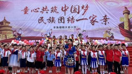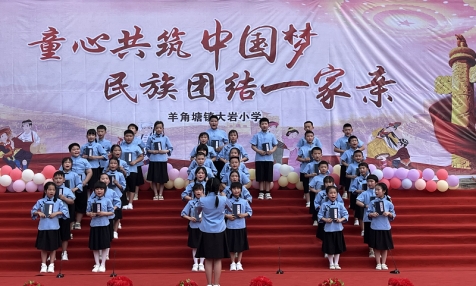 本网讯 6月1日,羊角塘镇大岩小学举办“童心共筑中国梦 民族团结一家亲”为主题的六一庆祝会,该校500余师生名参加。