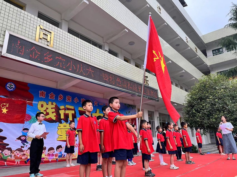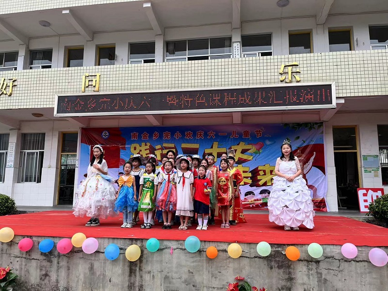 本网迅 6月1日上午,南金乡完小举行“践行党的二十大 童心向未来”庆六一暨少年宫特色课程汇报演出系列活动。 活动在庄严的升旗仪式中拉开序幕,新少先队员怀着激动的心情,光荣地加入中国少年先锋队,少先队员代表为新队员佩戴红领巾。鲜艳的红领巾在胸前飘扬,笑脸流露出由衷的欣喜。 该校校长夏晶为活动致辞。充满张力和能量的龙狮文化社团《祥龙舞动》表演迅速燃起欢乐的气氛。带来一场精彩的“六一”视听盛宴:舞蹈《心恋》、情景剧《茶与擂》、合唱《再见》……手工社团带来的《我型我秀》创意手工展示更是将现场气氛推向高潮。最终,评选出两个一等奖;五个二等奖;六个三等奖。 活动现场,孩子们身上所散发的幸福光芒和脸上洋溢的童真,感染着在场的每个人。“我今天感到特别开心,能够把我在社团活动中学到的技能在六一舞台上展示出来。”五年级学生谢灿杰兴奋地说。